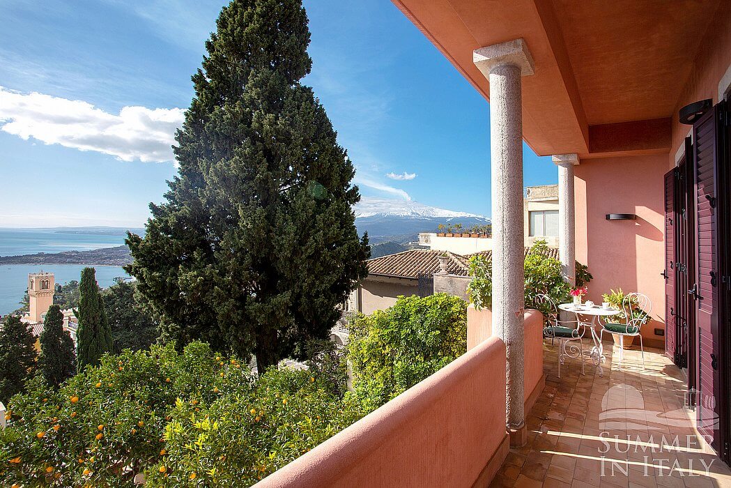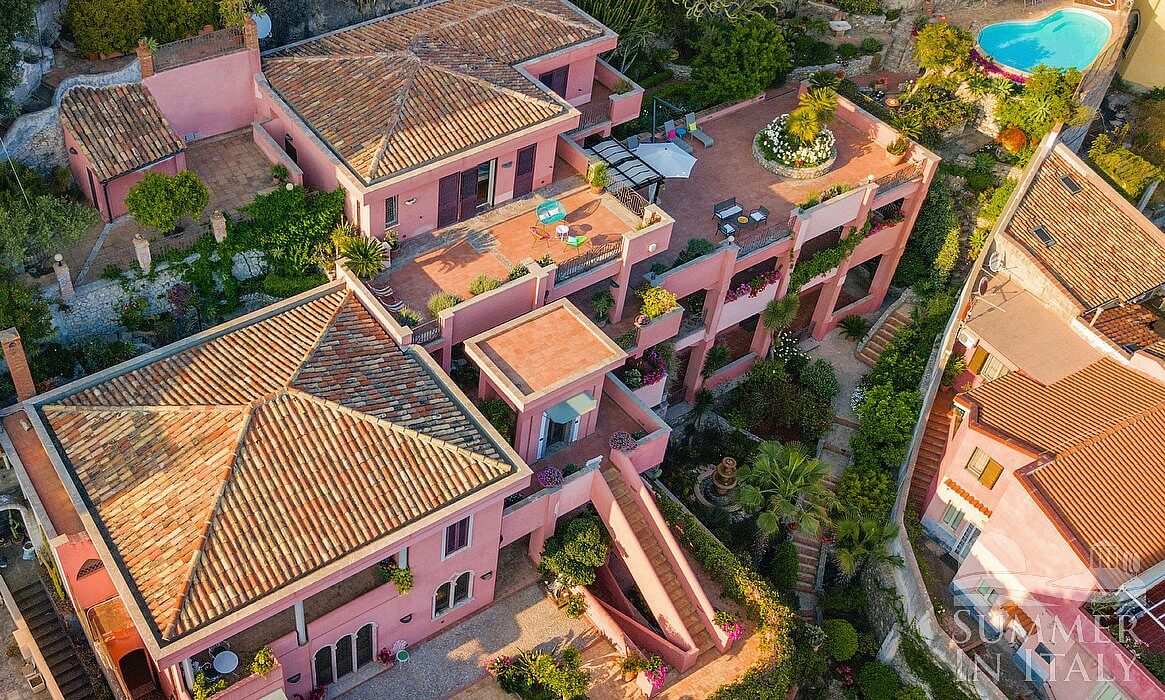 Nestled in the heart of Taormina, with breathtaking views of Mount Etna and the sea, Villa Doride is a refined private residence combining historic elegance with modern comforts. Consisting of two separate villas, this multi-level residence is accessible by way of an elevator and offers spacious panoramic terraces, Mediterranean gardens, and a swimming pool overlooking the gulf.