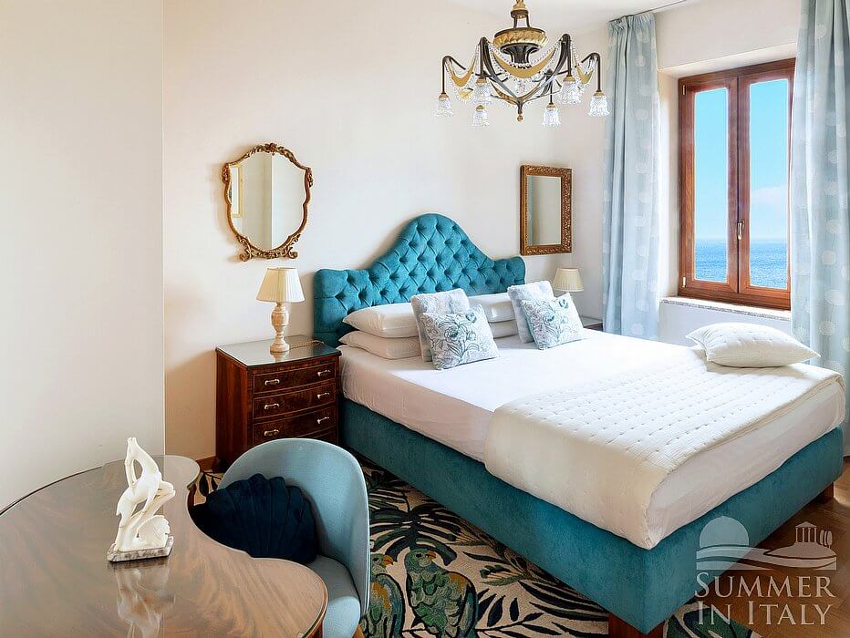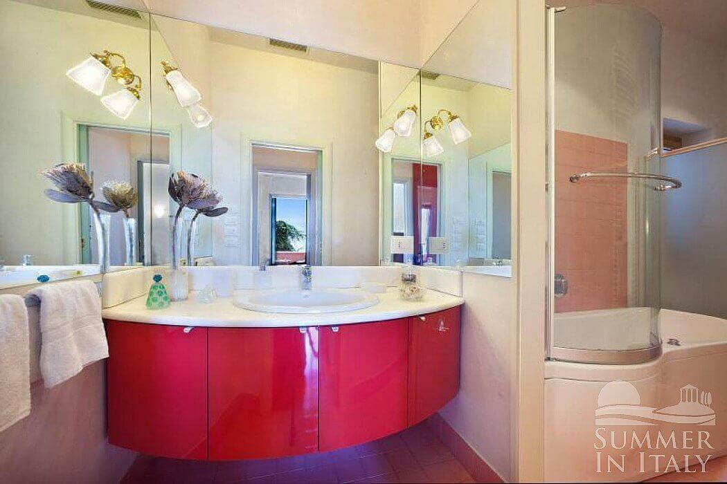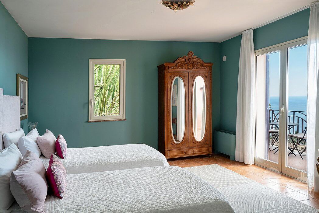 Villa Doride is an elegant and welcoming three-story residence which faces the sun and the sea. It sleeps 11 people. From Villa Doride you will enjoy a spellbinding view of the sea and of the coastline. Villa Doride is 320 square meters (3450 square feet). It features a private swimming pool, a private jacuzzi pool, private terraces, air conditioning (please read description below to check in which rooms the units are installed), winter heating and WI-FI Internet access.