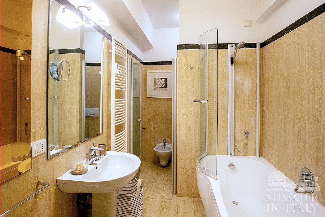 You will be able to reach the laundry room from the first terrace through an external access. Here you will find a washing machine, an iron and an ironing board at your disposal.