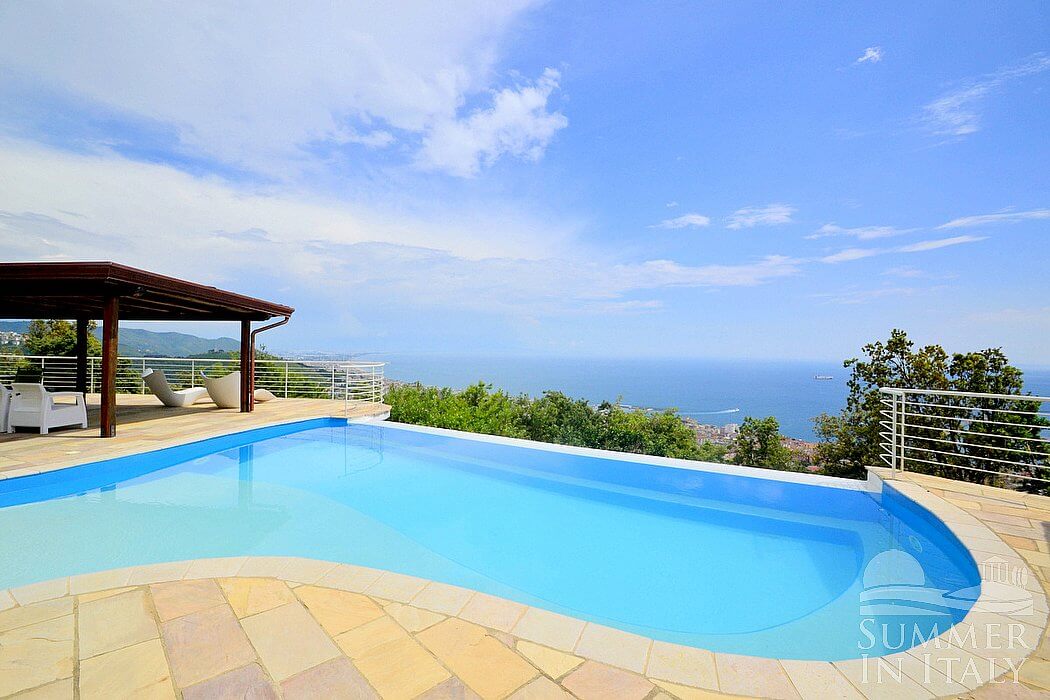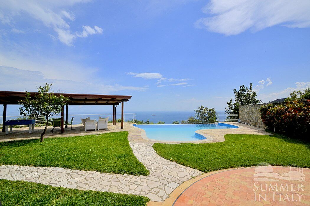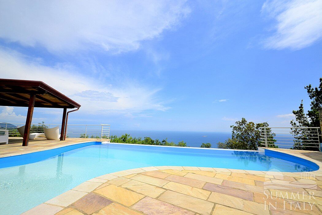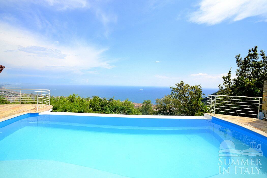 The swimming pool is 7 meters (23 feet) large by 9 meters (30 feet) long, 2.5 meters (8 feet) deep. The swimming pool has a sinuous shape. It is an infinity pool. From the swimming pool you will enjoy a spectacular view of the sea and of the tourist port and of the coast. You will share the pool with the owners. The swimming pool is open from the beginning of May until the end of October, from 9 am to 1 pm and from 4 pm to 8 pm.
