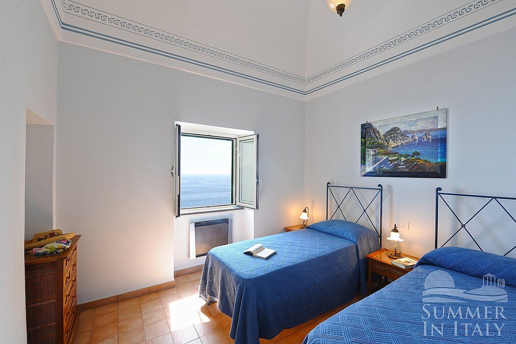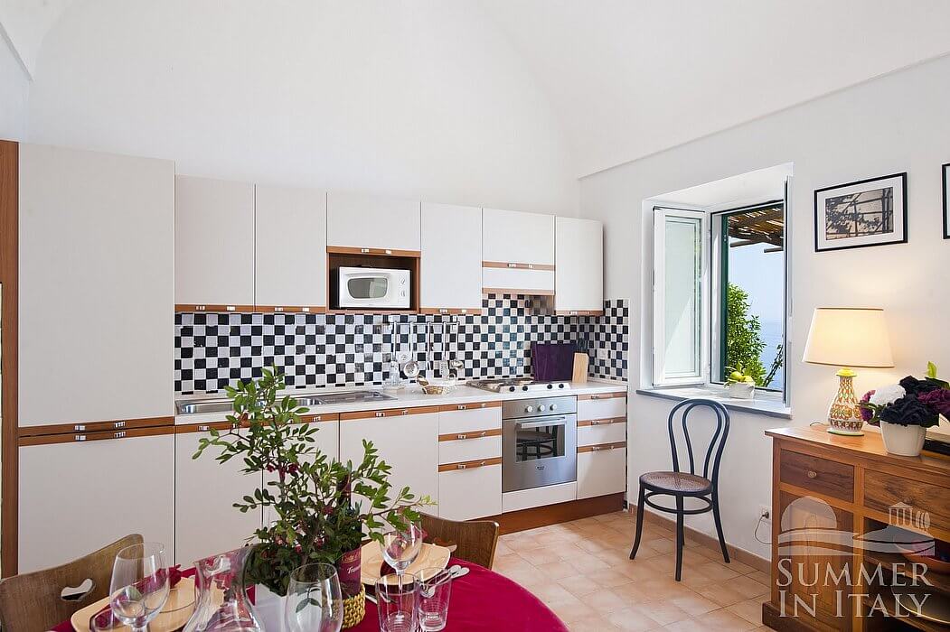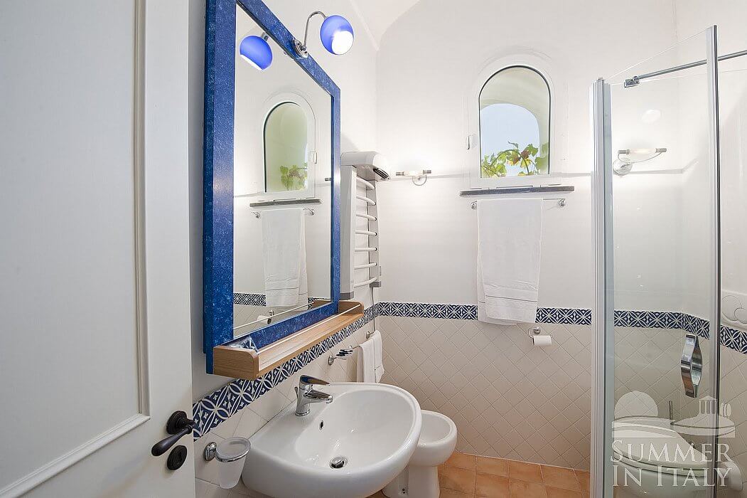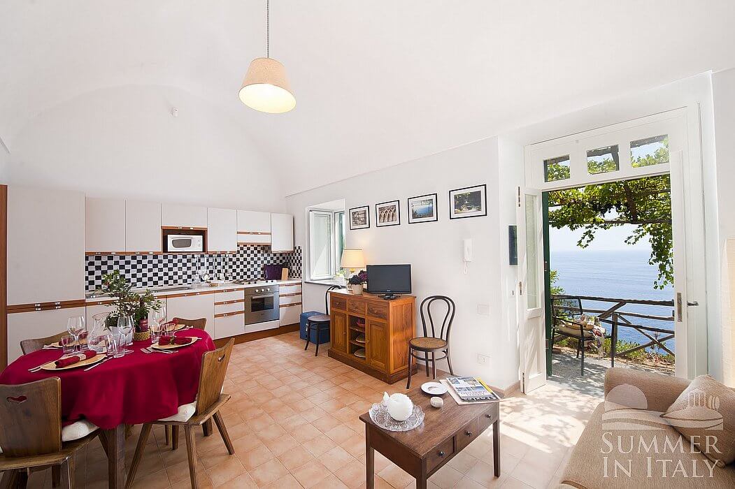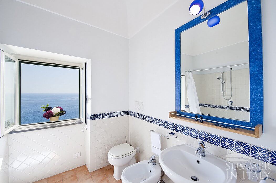 Villa Elidea E is a welcoming two-story cottage which faces the sun and the sea. It sleeps four people. From Villa Elidea E you will enjoy a spellbinding view of the sea, of the coast of Amalfi and of the gulf of Salerno far in the horizon. Villa Elidea E is 75 square meters (810 square feet). It features a private garden, air conditioning (please read description below to check in which rooms the units are installed), winter heating and WI-FI Internet access.