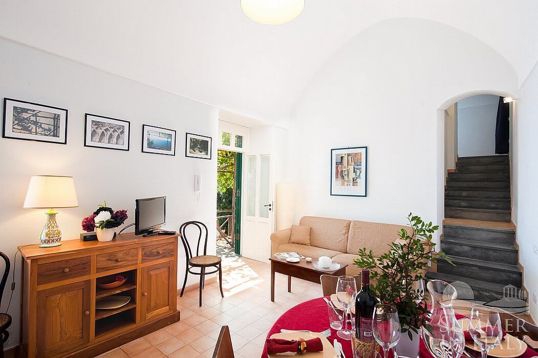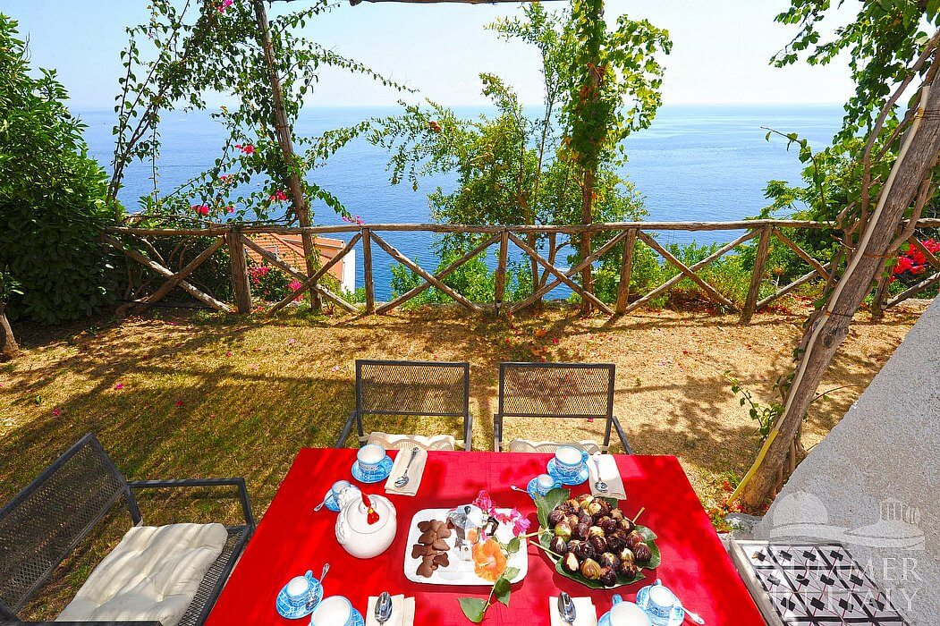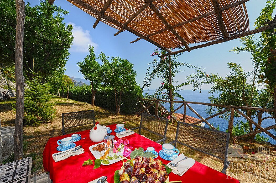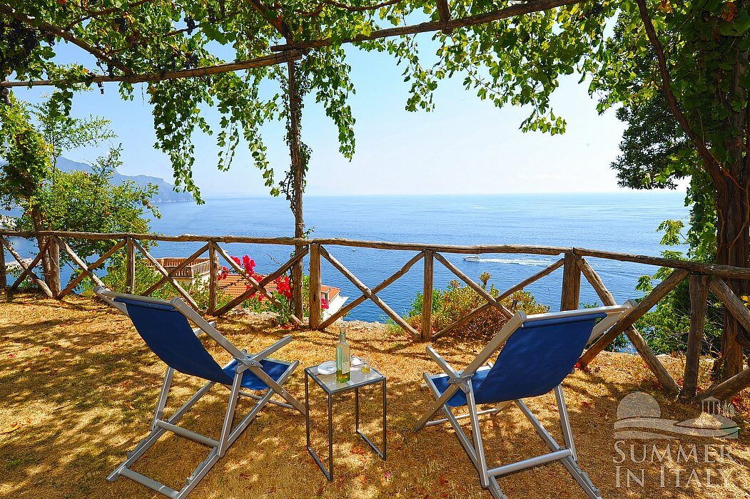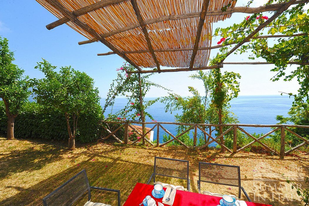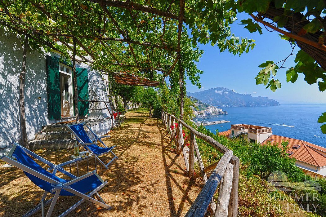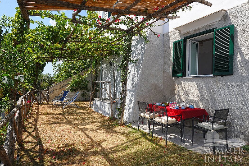 The garden is 230 square meters (2475 square feet). It is partly shaded by perfumed bougainvillea and lemon pergolas and by a characteristic pergola with a bamboo roof. It is equipped with a table, chairs and two deck chairs. From the garden you will enjoy a spellbinding view of the sea, of the coast of Amalfi and of the gulf of Salerno far in the horizon.
