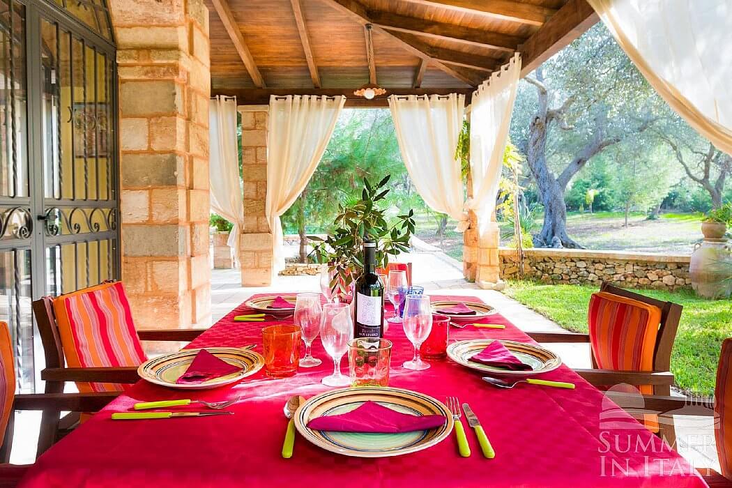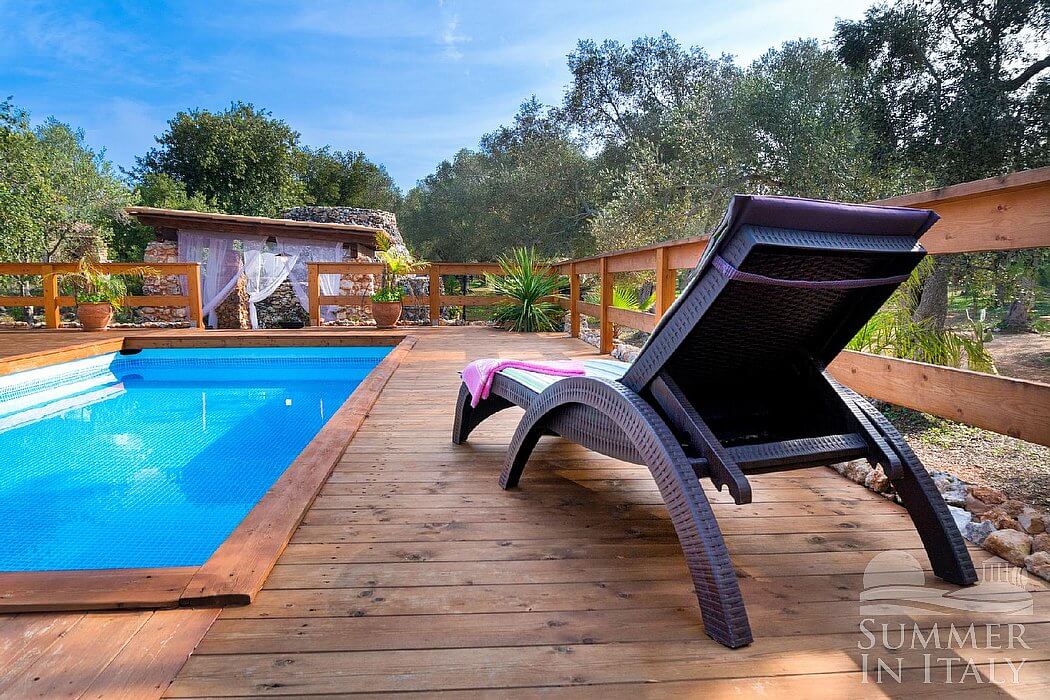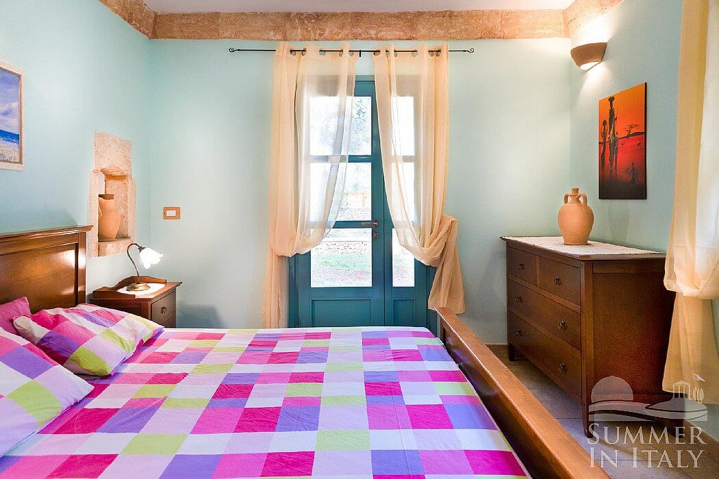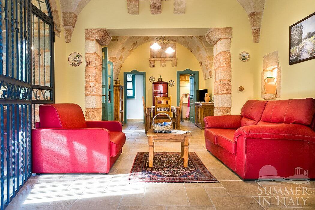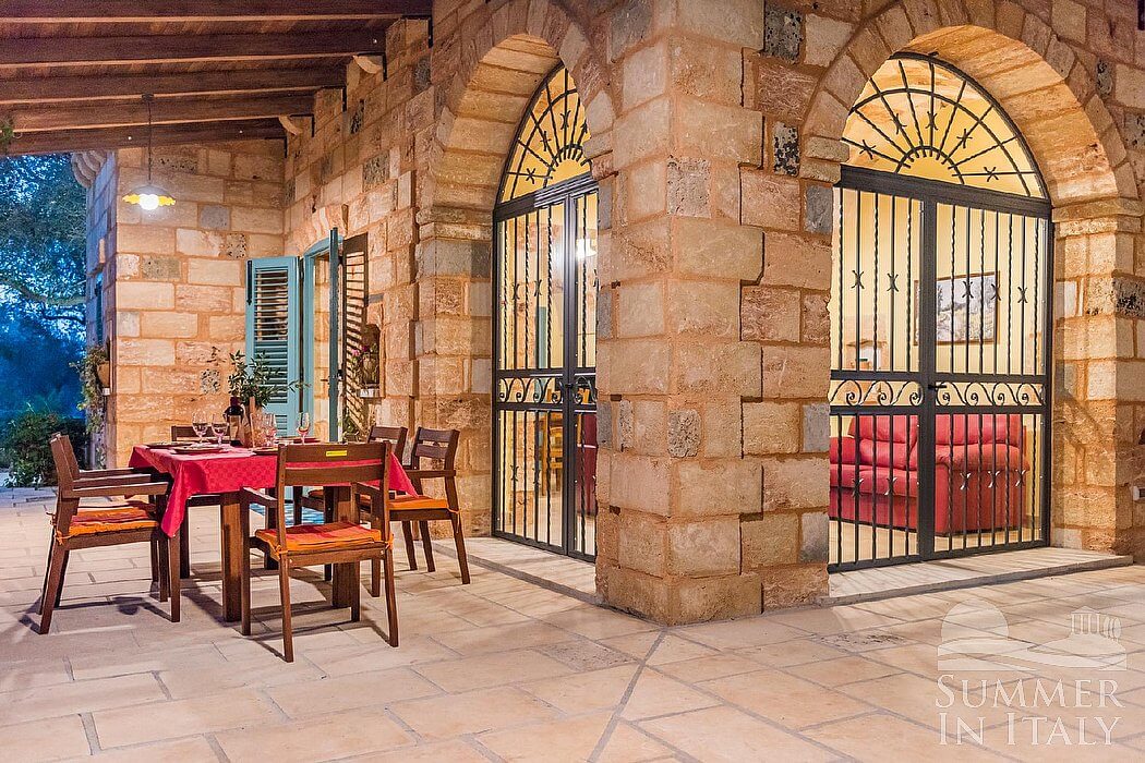 Villa Erve is a welcoming one-story independent house in the characteristic style of the Apulian countryside. It sleeps seven people. From Villa Erve you will enjoy a broad view of the greenery and of the surrounding countryside. Villa Erve is 100 square meters (1076 square feet). It features a private swimming pool, a private patio, a private garden, air conditioning (please read description below to check in which rooms the units are installed), winter heating and WI-FI Internet access.