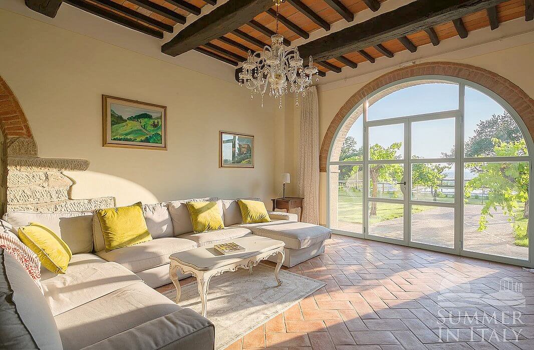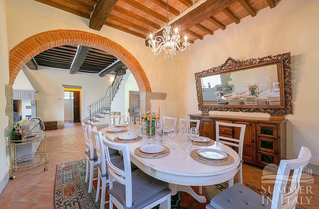 You will be roughly 6.5 km (4 miles) from the center of Cortona, where you will find restaurants and shops. You will find the closest restaurant at 2 km (roughly 1.2 miles). You will reach Villa Evarne from the parking area without having to climb any steps.