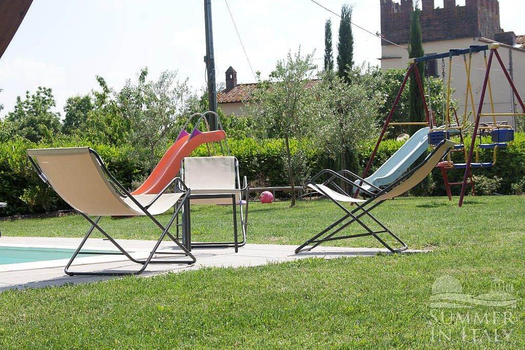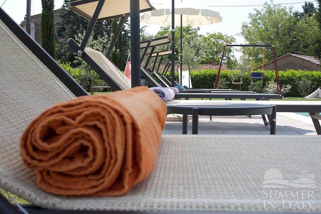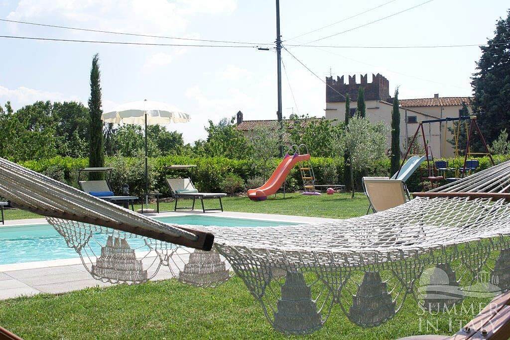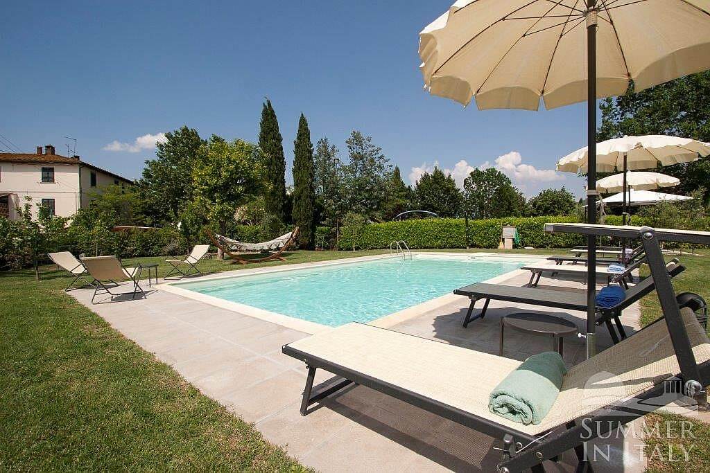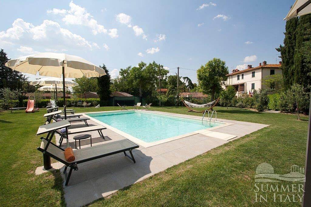 The swimming pool is 5 meters (16 feet) large by 10 meters (33 feet) long. The area is equipped with a table, chairs, sun umbrellas, deck chairs, sun loungers, an hammock and an external shower. From the swimming pool you will enjoy a gorgeous view of the Tuscan hills and of the greenery. The pool is open from the beginning of June until the end of September.