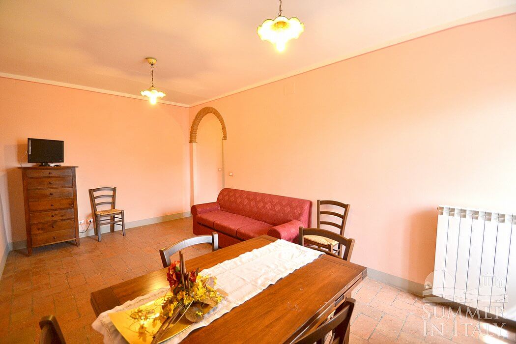 Villa Fastia Grande is a splendid apartment that covers the entire top floor of a villa. It sleeps seven people. From Villa Fastia Grande you will enjoy a pleasant view of the Tuscan hills and of the greenery. Villa Fastia Grande is 150 square meters (1615 square feet). It features a private swimming pool, a private garden, air conditioning (please read description below to check in which rooms the units are installed) and winter heating.
