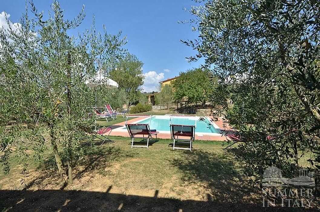 From Lucignano, travelling along a picturesque road winding through the hills that form the natural border between the Aretine and Sienese parts of the Valdichiana (Chiana Valley), we find the Villa Fedora. Located on a hill surrounded by olive trees, the house enjoys captivating views which are truly characteristic of Tuscany: olive groves and natural forest.