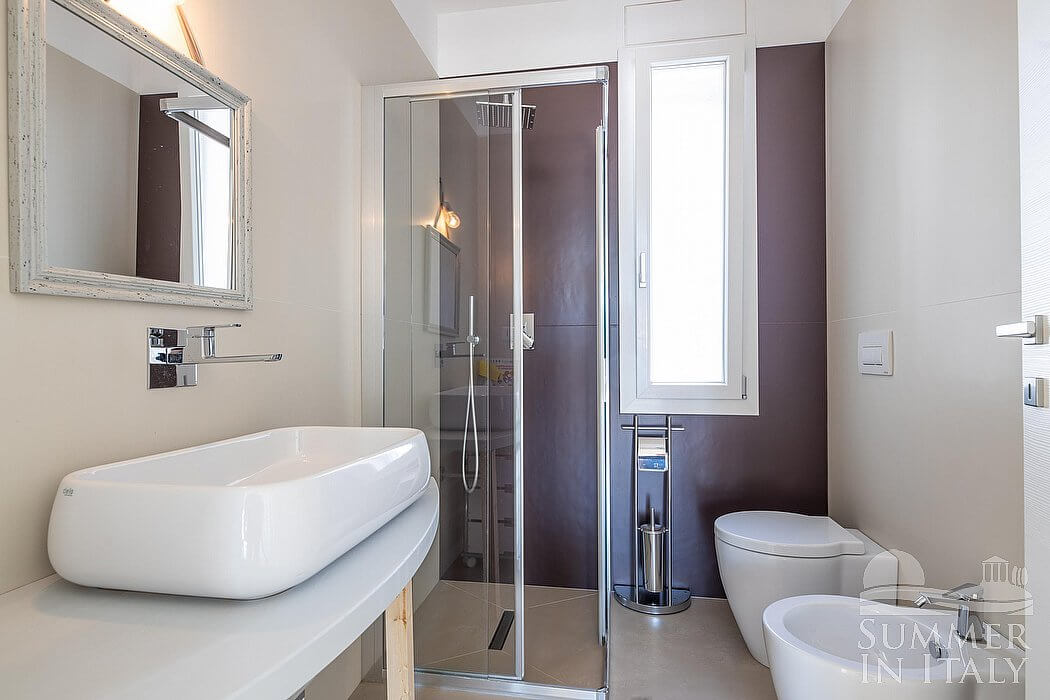 You will be able to reach the laundry room through a corridor. Here you will find a washing machine, an iron and an ironing board at your disposal.