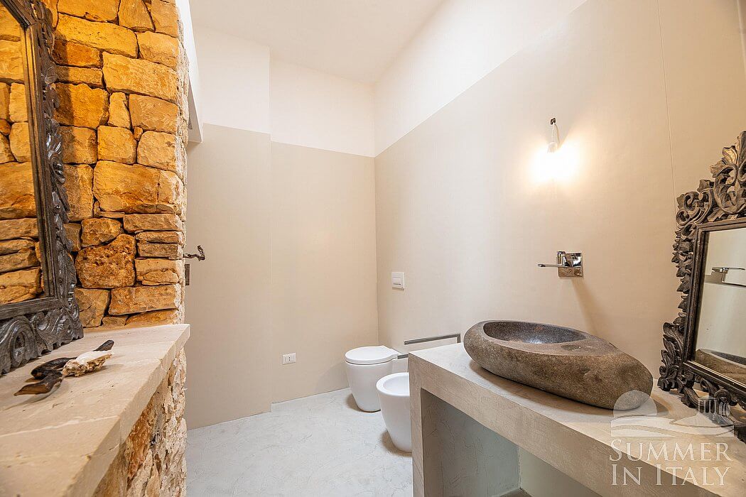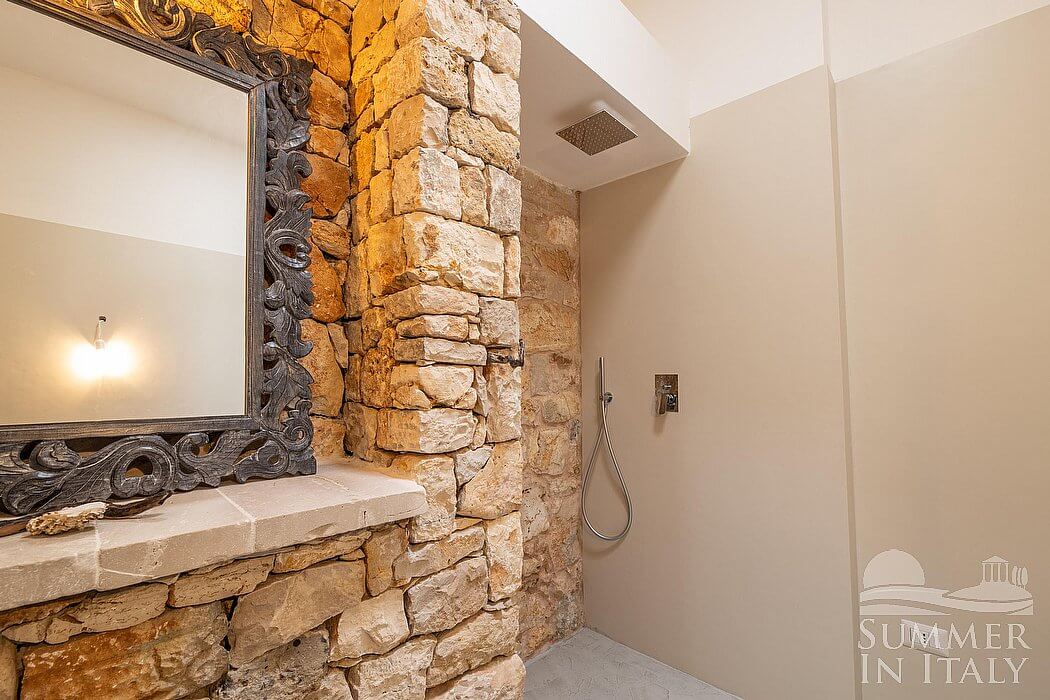 You will be roughly 2 km (1.2 miles) from the center of Marina di Mancaversa, where you will find restaurants and shops. You will find the closest beach (rocky) at roughly 1 km (0.6 miles) (other beaches are also available in the area farther away). You will reach Villa Francina from the parking area without having to climb any steps.