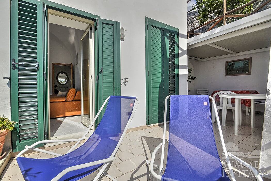 Villa Fulvia is a characteristic and welcoming apartment which faces the sun and the sea. It sleeps four people. From Villa Fulvia you will enjoy an enchanting view of the sea and of the small Li Galli islands at a distance. Villa Fulvia is 60 square meters (645 square feet). It features a private terrace with a view of the sea, air conditioning (please read description below to check in which rooms the units are installed) and winter heating.