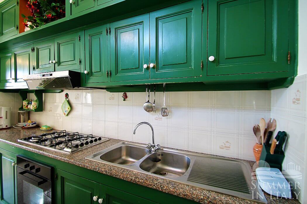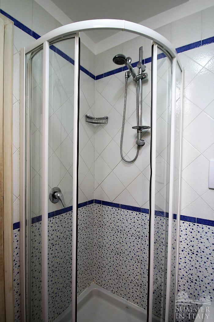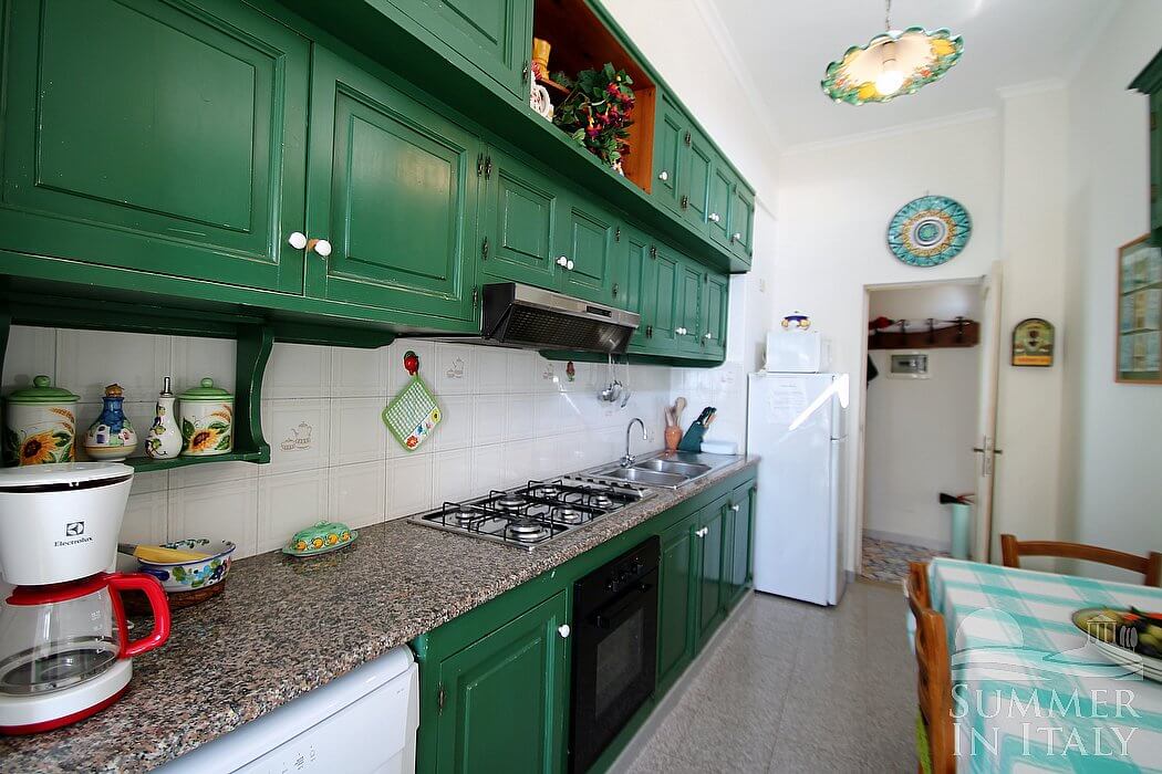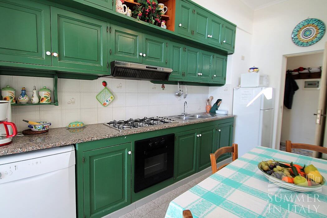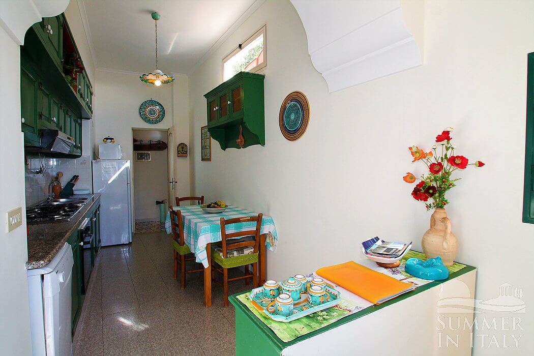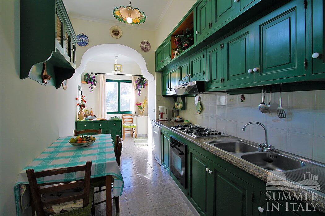 The kitchen is spacious and comfortable, equipped with a six-burner gas cooker, an electric oven, a refrigerator with freezer, a dishwasher, a microwave oven, an Italian-style coffee-maker, an American-style coffee-maker (bring your filters!), a toaster and a kettle. The dining table can accommodate three guests. The kitchen is also equipped with an Ethernet plug for broadband Internet connection (don't forget your cable!). From the kitchen a double-glazed French door will take you to the terrace with a view of the sea and of Positano. The room has a double-glazed window with a view of the sea.