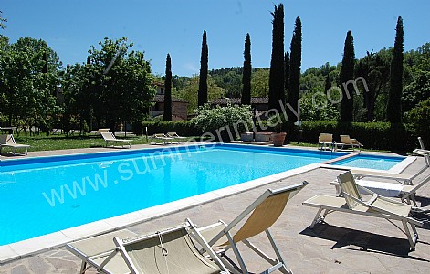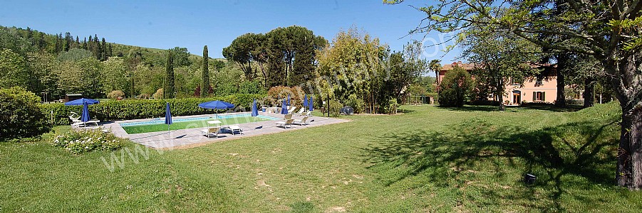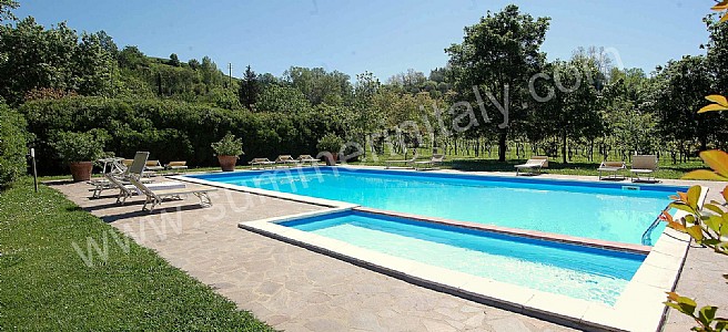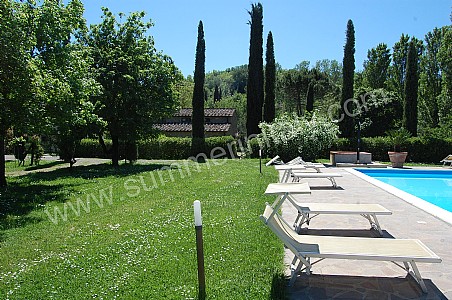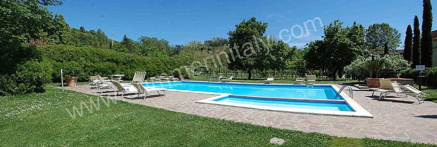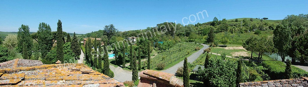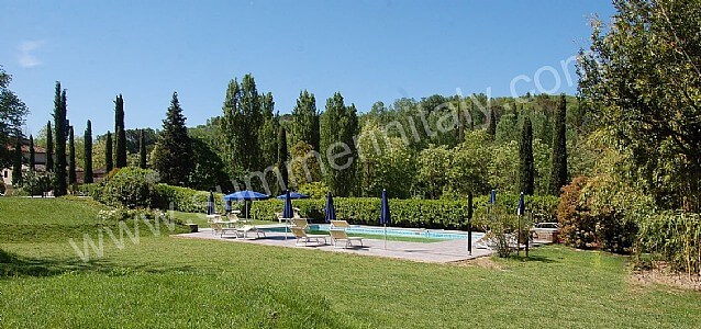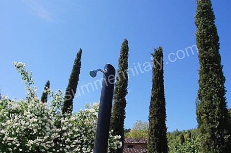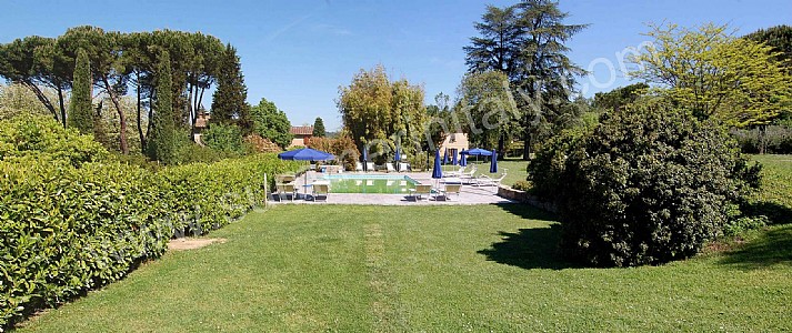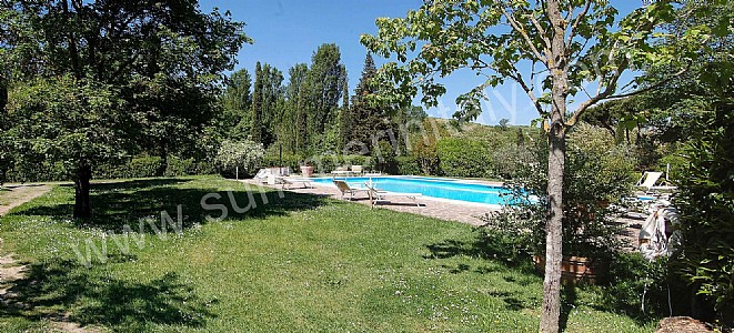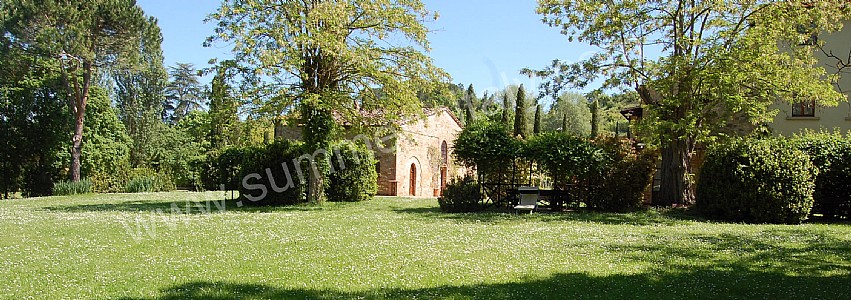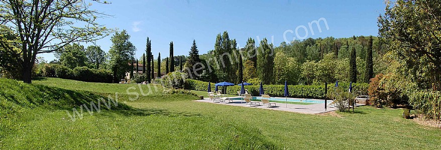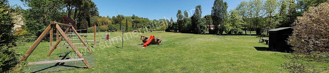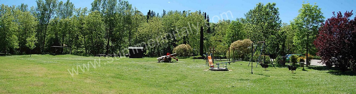 The garden is 5000 square meters (54000 square feet) large. It is partly shaded by elegant trees and pergolas and by cypresses. It is equipped with a table, chairs and sun umbrellas. In the garden you will find a fenced children's playground. From the garden you will enjoy a wonderful view of the valley and of the vineyards. You will share the garden with the other guests staying at the complex.