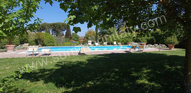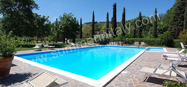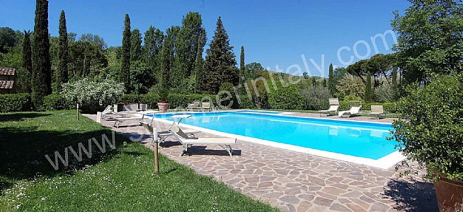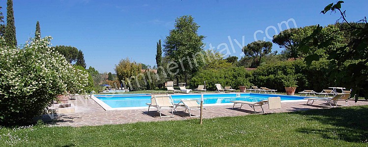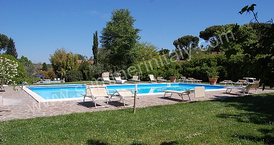 The swimming pool is 7 meters (23 feet) large by 15 meters (50 feet) long. The area is equipped with a table, chairs, sun umbrellas, deck chairs, sun loungers and an external shower. From the swimming pool you will enjoy an enchanting view of the Tuscan hills and of the vineyards. You will share the pool with the other guests staying at the complex. The swimming pool is open from the beginning of June until the end of September.