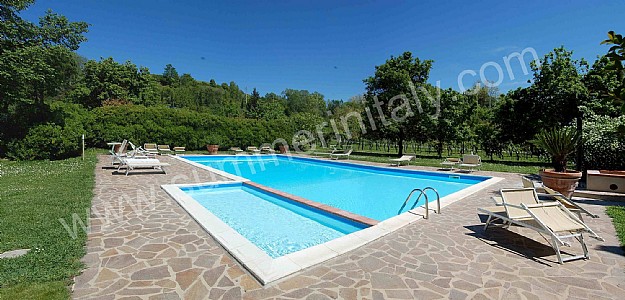 It is surrounded by seven hectares of lawn and gardens that descend towards to the Egola River, where you'll find two beautiful swimming pools, a tennis court, and abundant space for relaxing and with lots of room for kids to play.