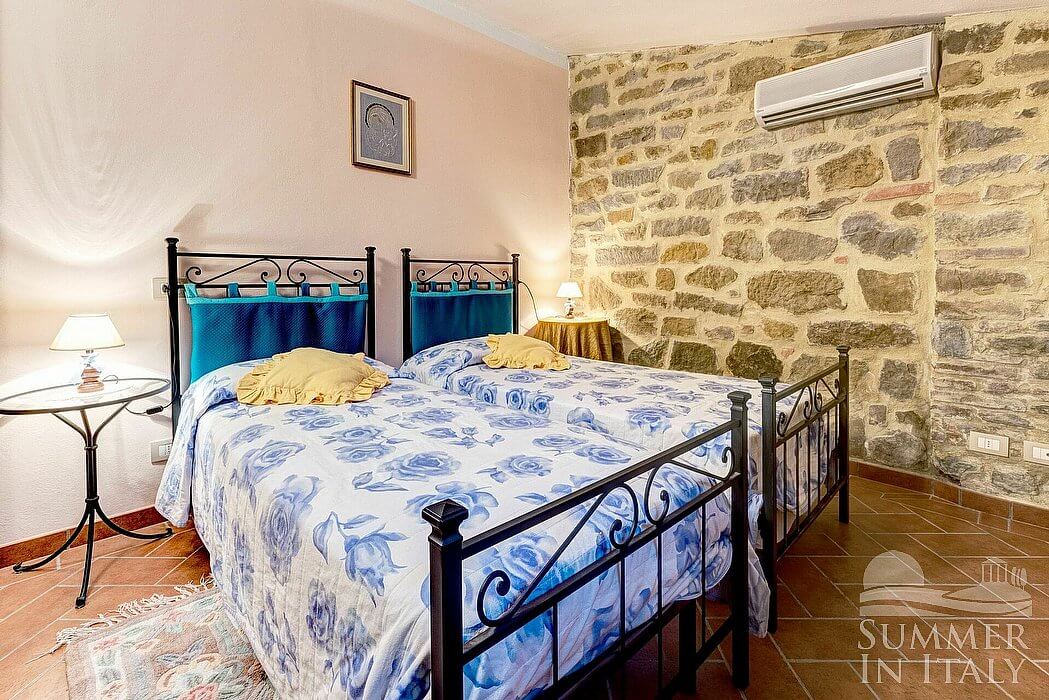 You will be able to enter the tenth bedroom from the living room. It has two twin beds (80 cm/32 inches), that can be pushed together into a matrimonial bed if requested (please contact our staff in advance to make arrangements). The room also has a small high window, and it's equipped with an air conditioning/heating unit.