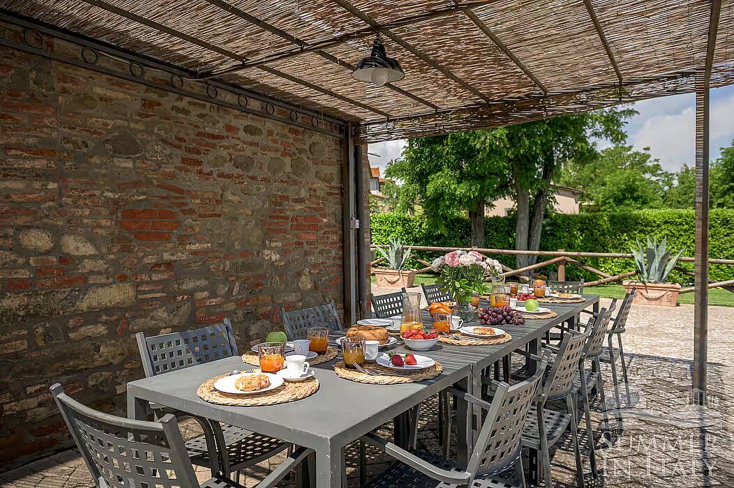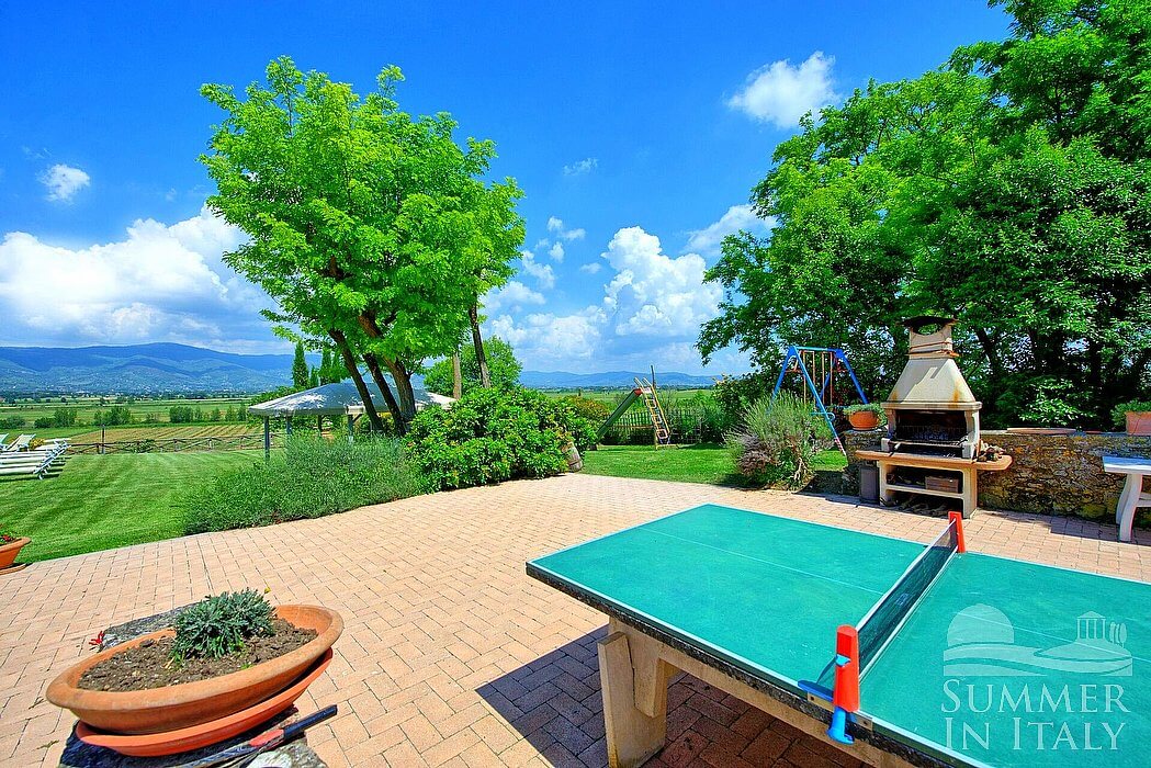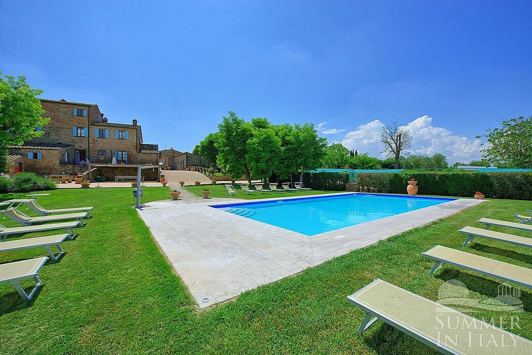 The swimming pool is 7 meters (23 feet) large by 14 meters (46 feet) long. The area is equipped with sun umbrellas and sun loungers. From the swimming pool you will enjoy a fascinating view of the Tuscan hills and of the greenery. The pool is open from the beginning of May until the beginning of October.