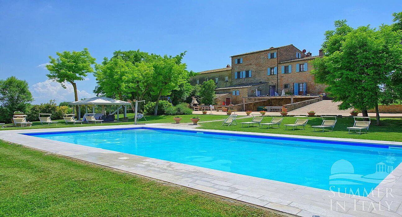 The swimming pool is 7 meters (23 feet) large by 14 meters (46 feet) long. The area is equipped with sun umbrellas and sun loungers. From the swimming pool you will enjoy a fascinating view of the Tuscan hills and of the greenery. The pool is open from the beginning of May until the beginning of October.