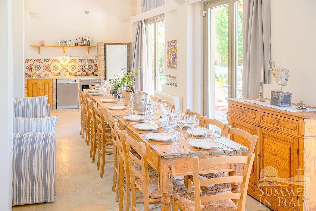 Villa Le Zille is a characteristic and welcoming two-story age-old farm house in a quiet position, surrounded by the Apulian countryside. It sleeps 16 people. From Villa Le Zille you will enjoy a spellbinding view of the greenery. Villa Le Zille is 350 square meters (3770 square feet). It features a private swimming pool, a private terrace, a private patio, a private garden, air conditioning (please read description below to check in which rooms the units are installed), winter heating and WI-FI Internet access.