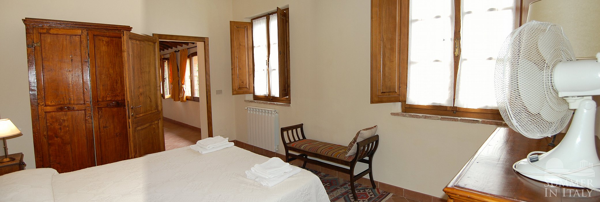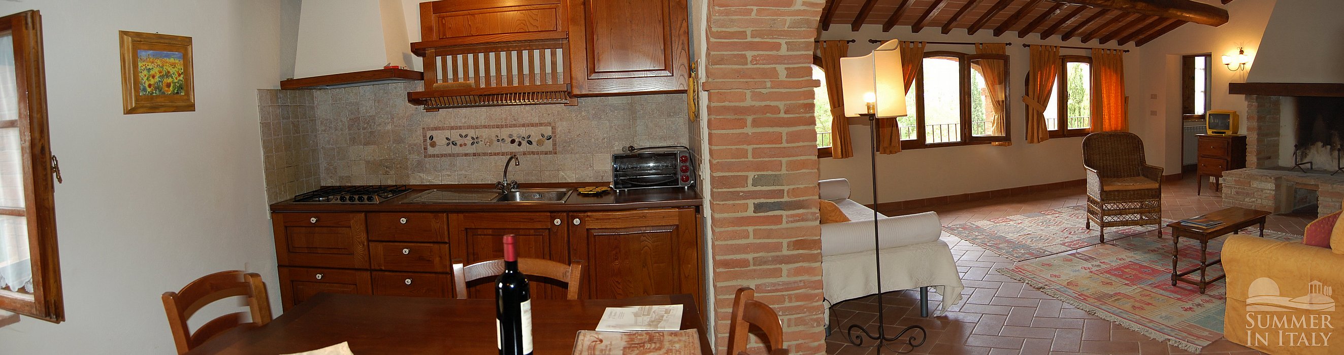 The hamlet is located on a prominent position on one of the sweet hills which are part of the ‘Crete Senesi ’. All around you is a landscape which is the most loved and typical of Tuscany, reproduced by numerous artists and filled with an atmosphere of peace and tranquility to be experienced by all! You will be in the area where the famous Brunello di Montalcino wine is produced.