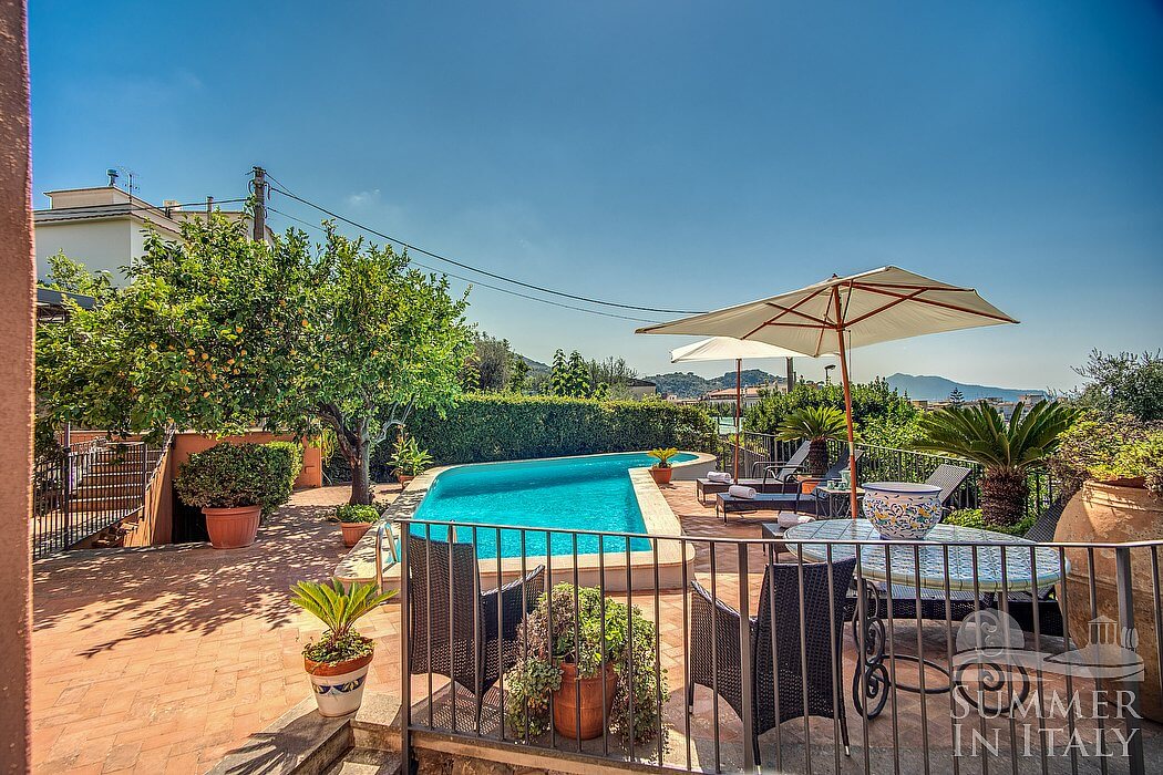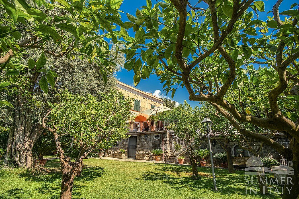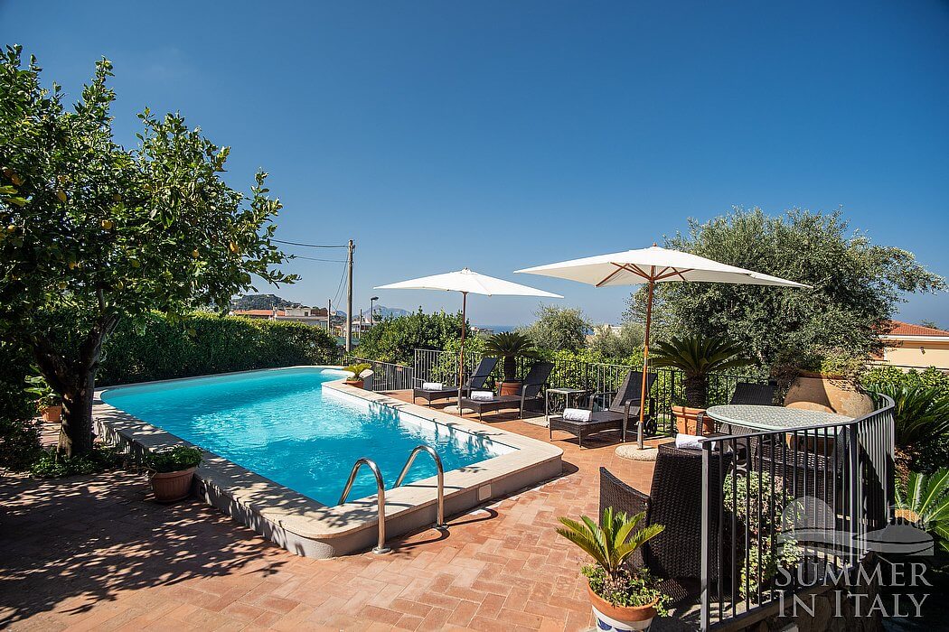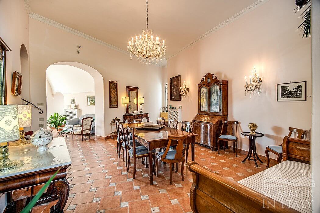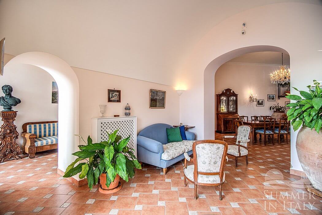 Villa Libeccio is a spacious three-story historical villa situated in an elegant eighteenth-century building. It sleeps 12 people. From Villa Libeccio you will enjoy a nice view of the sea and of the island of Capri. Villa Libeccio is 450 square meters (4850 square feet). It features a private swimming pool, two spacious private terraces, a private garden, air conditioning (please read description below to check in which rooms the units are installed) and WI-FI Internet access.