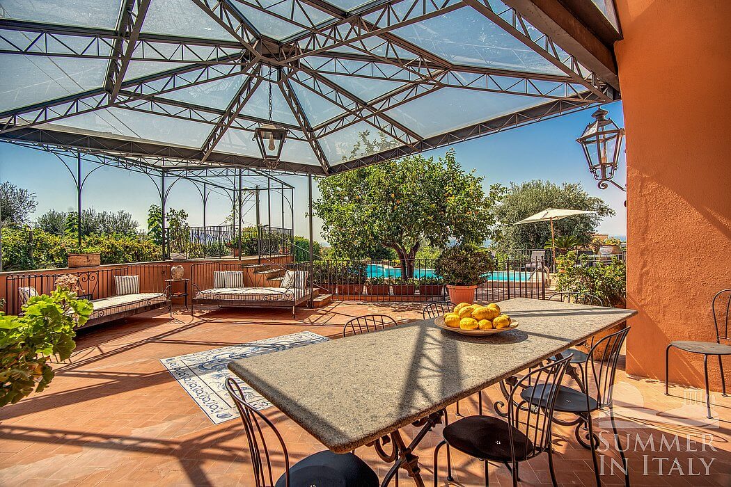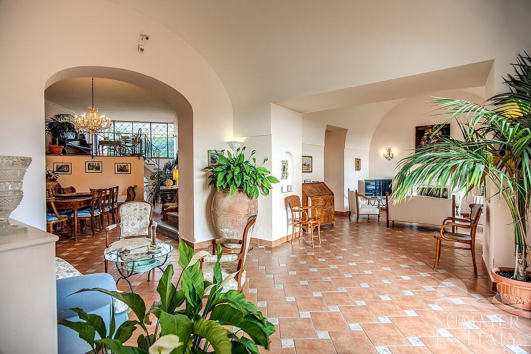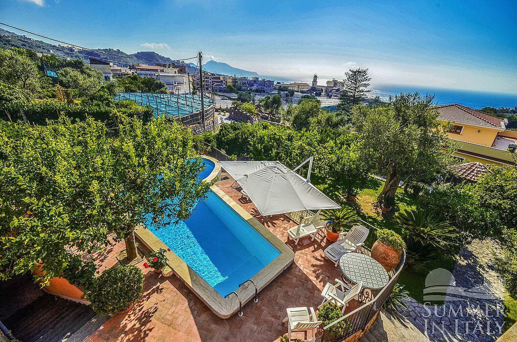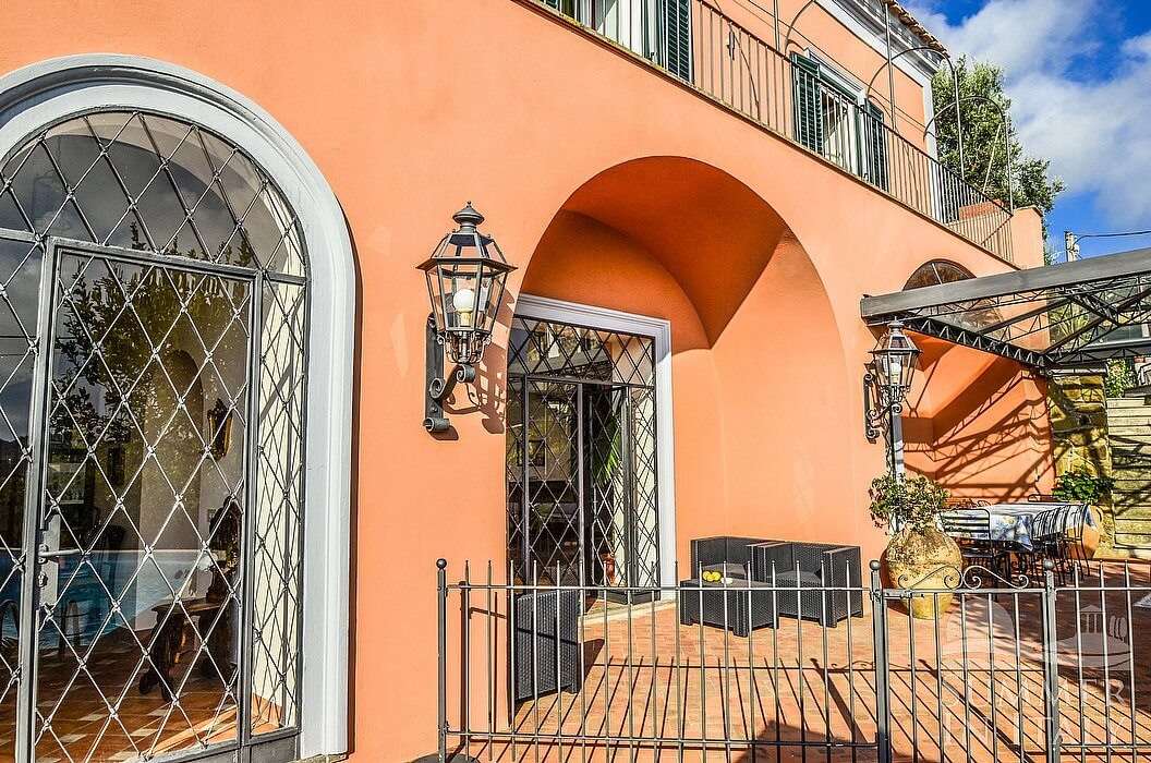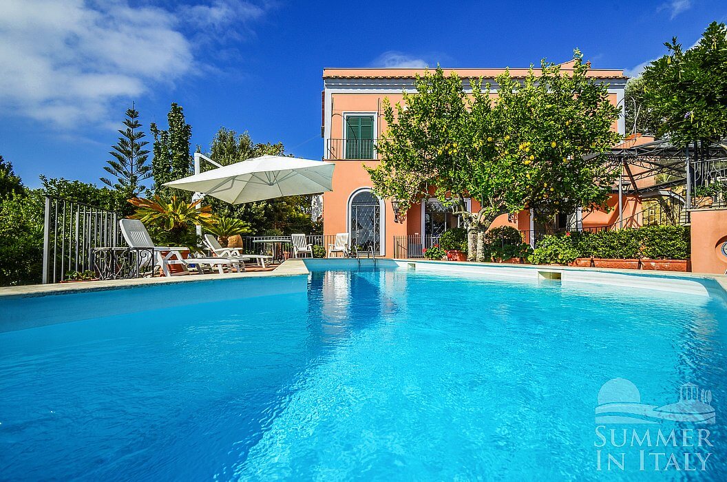 Villa Libeccio is a spacious three-story historical villa situated in an elegant eighteenth-century building. It sleeps 12 people. From Villa Libeccio you will enjoy a nice view of the sea and of the island of Capri. Villa Libeccio is 450 square meters (4850 square feet). It features a private swimming pool, two spacious private terraces, a private garden, air conditioning (please read description below to check in which rooms the units are installed) and WI-FI Internet access.