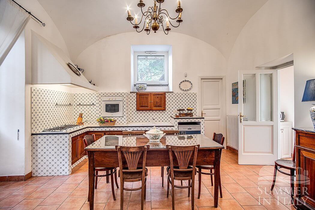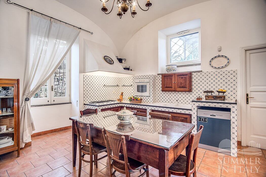 You will be able to enter the kitchen from the dining room. It is equipped with a five-burner gas cooker, an electric oven, a refrigerator with freezer, a dishwasher, a microwave oven, an Italian-style coffee-maker and a kettle. The dining table can accommodate 12 guests. The kitchen is also equipped with a small television (local channels). The kitchen has two windows.