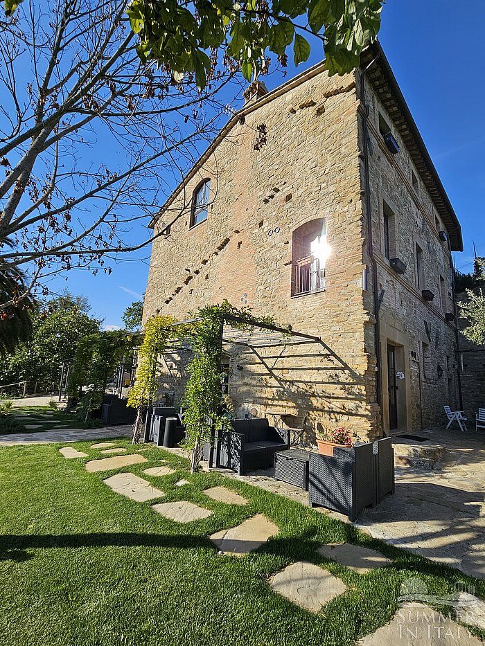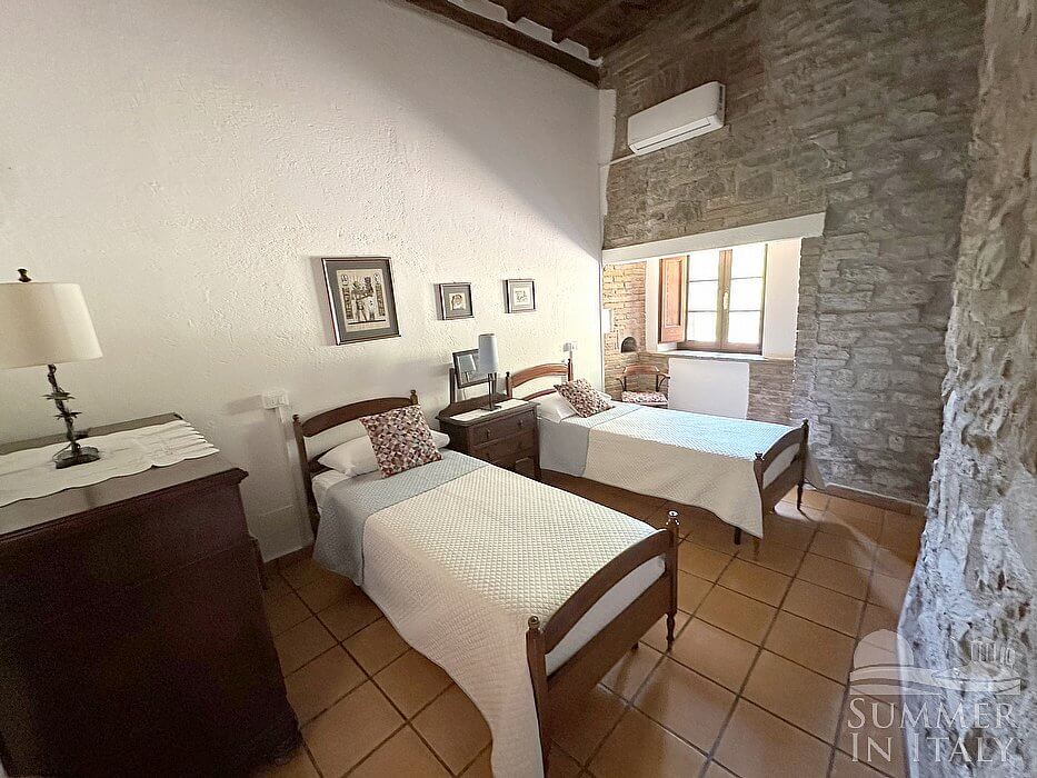 Villa Loredana is a characteristic and welcoming three-story age-old farm house surrounded by the greenery. It sleeps 31 people. From Villa Loredana you will enjoy a charming view of the Umbrian hills and of the greenery. Villa Loredana is 670 square meters (7210 square feet). It features a private swimming pool, two private patios, a private garden, air conditioning (please read description below to check in which rooms the units are installed), winter heating and WI-FI Internet access.