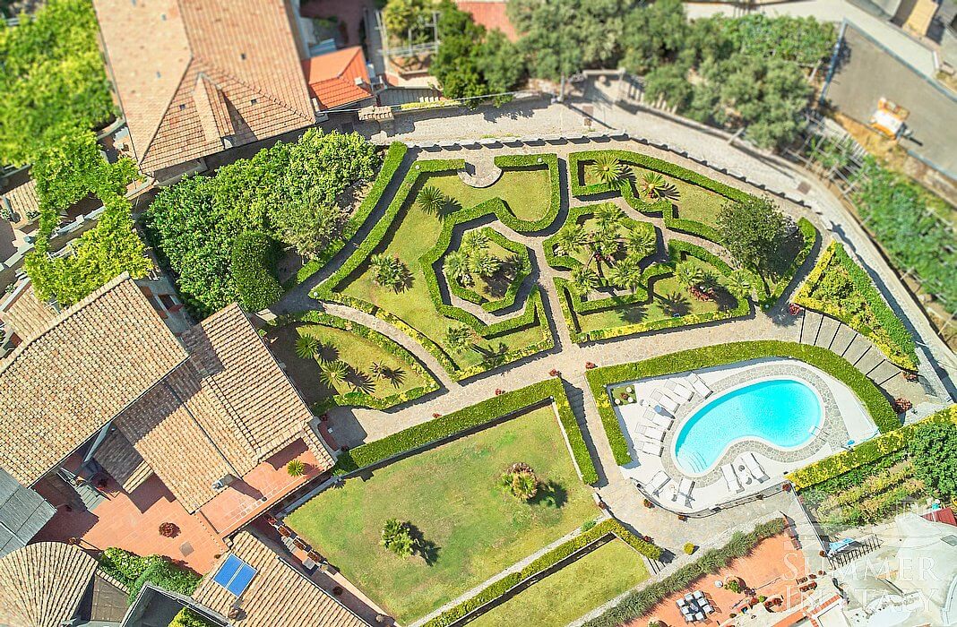 You will reach Villa Mabella from the parking area going down a 250-meters (820-feet) public walkway that cuts through a courtyard and includes approximately 90 stairway steps.