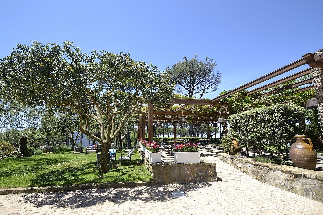 Upon arrival you will soon notice the house, white from up above, rising even higher than the crowns of the huge umbrella-like shaped pines which stand against the blue of the sky and the sea.