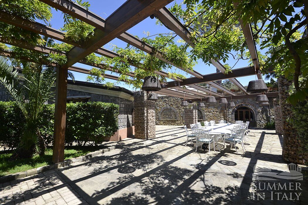 The second kitchen is professional-grade, equipped with a nine-burner gas cooker, an electric oven, a counter refrigerator, a dishwasher, a microwave oven, an Italian-style coffee-maker and other small appliances. There is also a wood-fired pizza oven. From the kitchen two French doors will take you to the patio and the garden. The kitchen is equipped with an air conditioning/heating unit.
