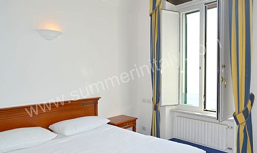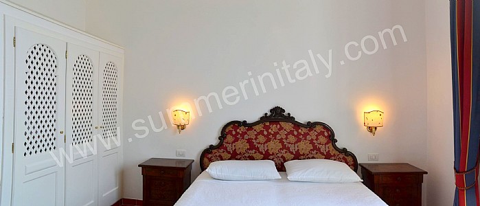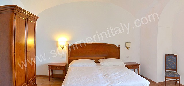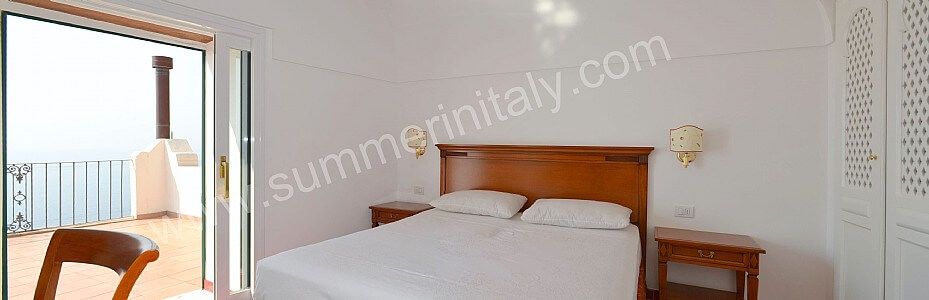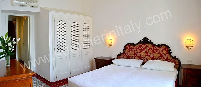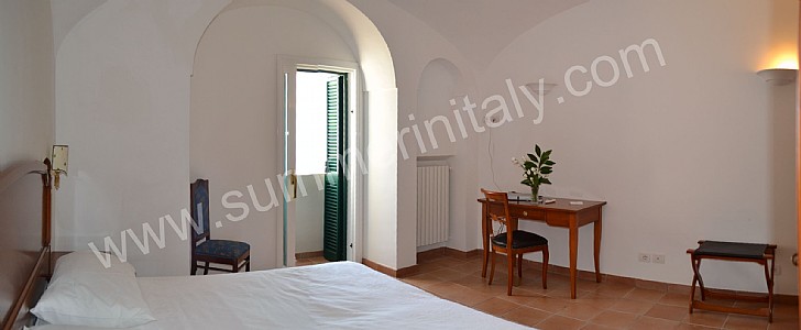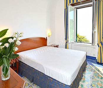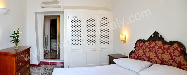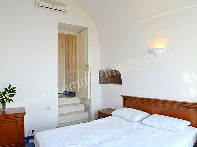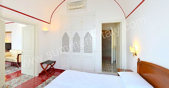 You will be able to enter the eleventh bedroom from the corridor. The bedroom has a matrimonial bed (160 cm/63 inches, wider than a queen-size bed). In this room you will find a flat-screen satellite television (local channels). From the bedroom you will be able to enter a small terrace with a view of the sea and of the coast of Amalfi through a double-glazed French door. The room has a double-glazed window with a view of the sea. The bedroom is equipped with an air conditioning/heating unit, and you will also find a safe. This bedroom has an en-suite bathroom, equipped with a washbasin, a toilet, a fully enclosed shower and a hairdryer.