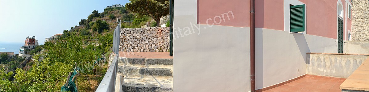 So, in order to reach the house you will pass across the ancient cloister, which now belongs to the hotel, and from there go on for a pedestrian path that winds through the traditional coastal homes and includes approx. 200 steps.