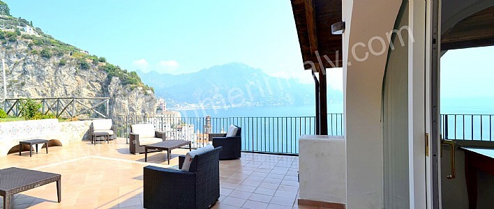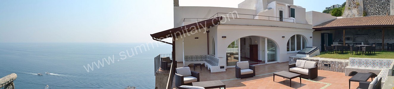 Villa Medea is an elegant and welcoming four-story villa set into the cliff, sheer above the sea. It sleeps 24 people. From Villa Medea you will enjoy a breathtaking view of the sea and of the coast of Amalfi. Villa Medea is 250 square meters (2690 square feet). It features a private swimming pool, two wide private terraces with a view of the sea, a private garden, air conditioning (please read description below to check in which rooms the units are installed), winter heating and WI-FI Internet access.