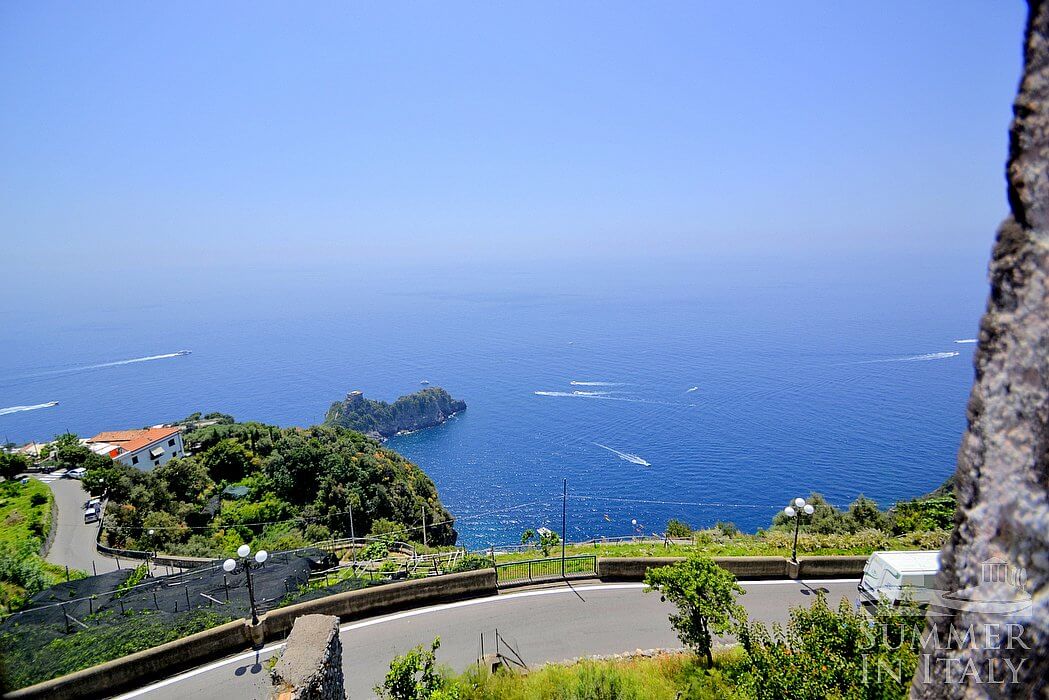 The tower stands high on a prominent stretch of coast about 100 m (about 328 feet) above sea level. From its top, your eyes will behold a vast panorama of sea, the picturesque Cape of Conca dei Marini. Every bit of scenery in this area is really breathtaking.