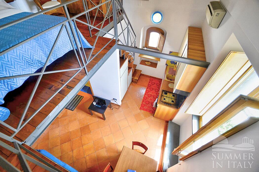 Villa Merlata is a charming apartment created inside an ancient watch tower. It sleeps two people. From Villa Merlata you will enjoy a charming view of the sea and of the coastline. Villa Merlata is 40 square meters (430 square feet). It features a nice private terrace with a view of the sea, a private garden, air conditioning (please read description below to check in which rooms the units are installed) and winter heating.