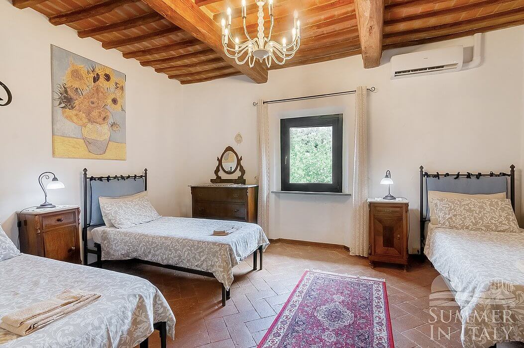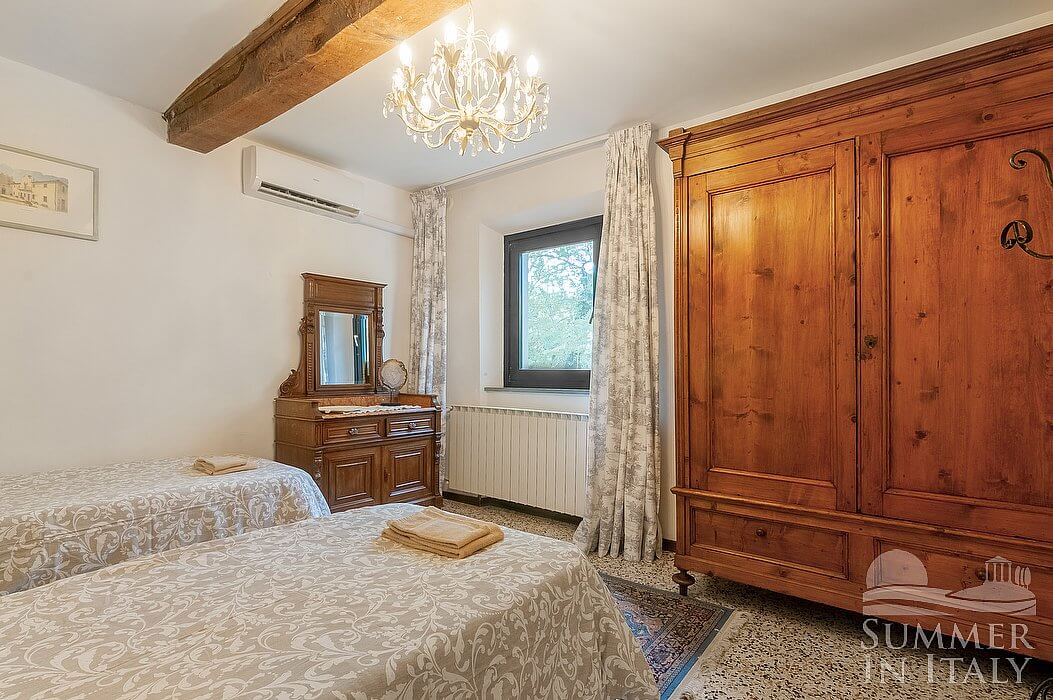 Villa Monasia is a characteristic and welcoming two-story apartment that is part of an ancient country house made of stone. It sleeps nine people. From Villa Monasia you will enjoy a charming view of the greenery and of the hills. Villa Monasia is 240 square meters (2600 square feet). It features a private swimming pool and a private jacuzzi pool, two private patios, a private garden, air conditioning (please read description below to check in which rooms the units are installed), winter heating and WI-FI Internet access.