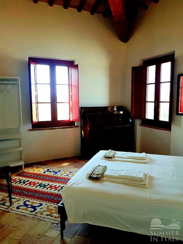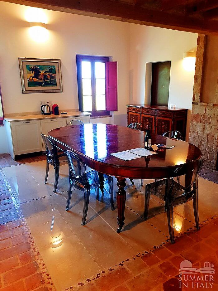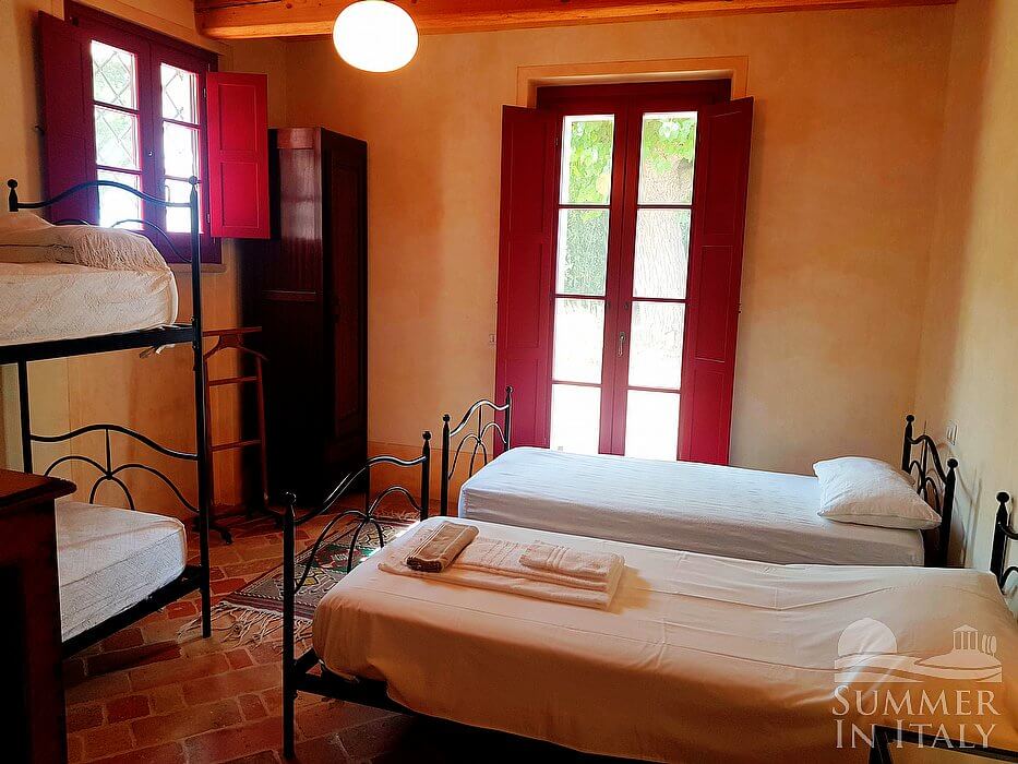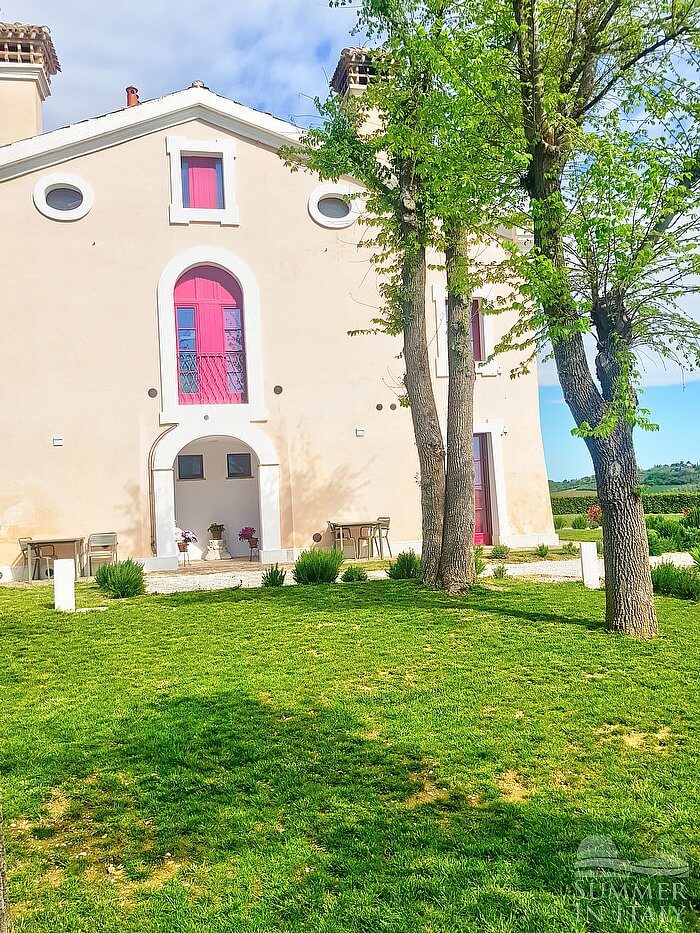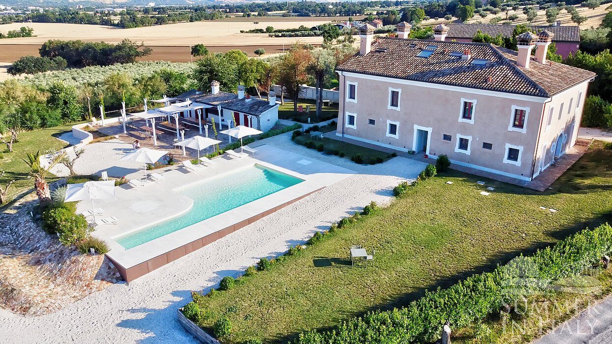 Villa Mortella Grande is a welcoming two-story villa in a quiet position, in the Marche countryside. It sleeps 28 people. From Villa Mortella Grande you will have a lovely view of the garden and of the surrounding countryside. Villa Mortella Grande is 600 square meters (6460 square feet). It features a private swimming pool, a private garden, underfloor cooling (effect similar to air conditioning), winter heating and WI-FI Internet access.