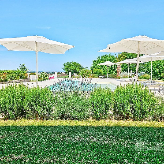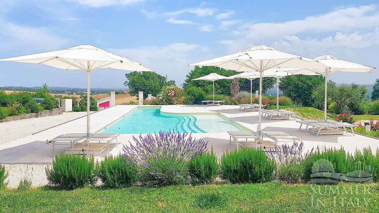 The swimming pool is 6.5 meters (21 feet) large by 15 meters (50 feet) long, up to 1.4 meters (4.6 feet) deep. The area is equipped with sun umbrellas and sun loungers. From the swimming pool you will enjoy a lovely view of the Marche hills and of the greenery. The pool is open from mid-May until the end of October.