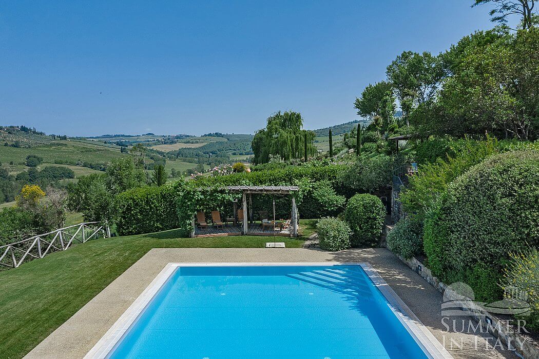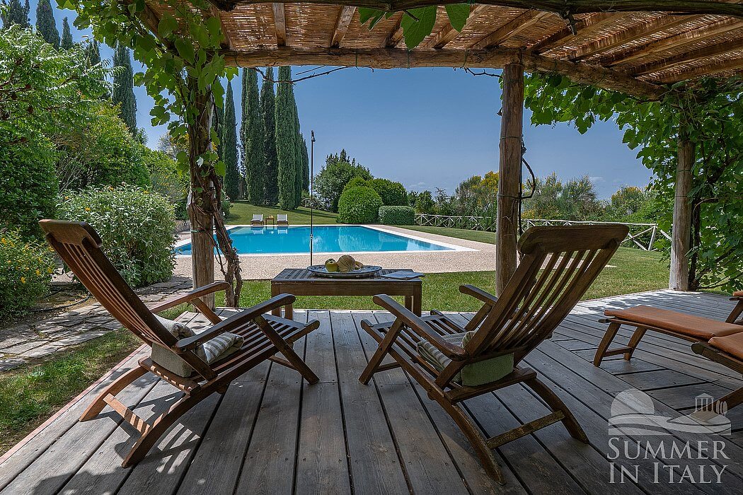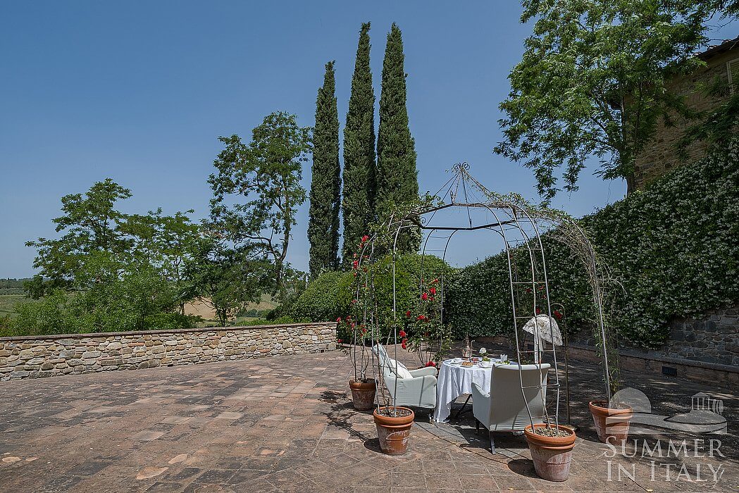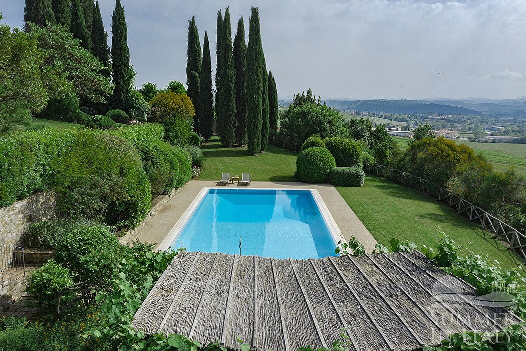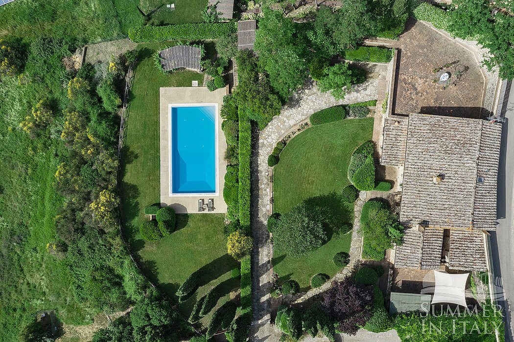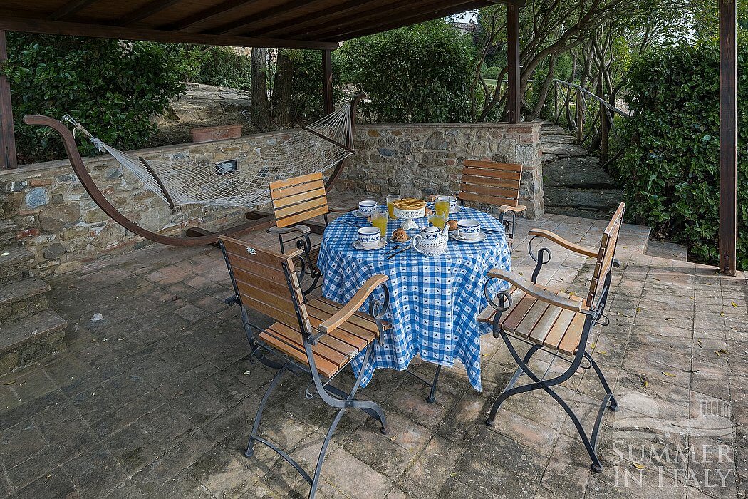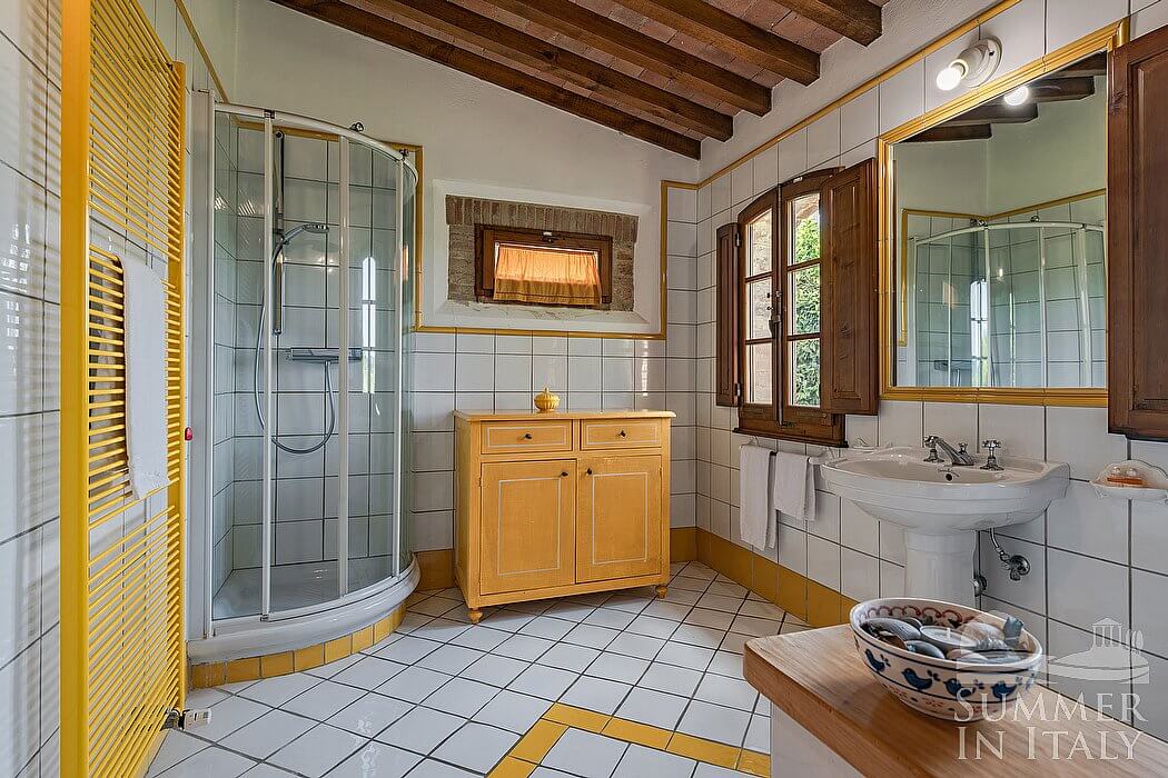 You will reach the swimming pool from the villa going down a short route that cuts through the garden and includes approximately 25 stairway steps. The pool is 7 meters (23 feet) large by 14 meters (46 feet) long. The area is equipped with deck chairs, sun loungers, a gazebo and an external shower. From the swimming pool you will enjoy an enchanting view of the Senesi hills. The pool is open from the beginning of May until the end of October.