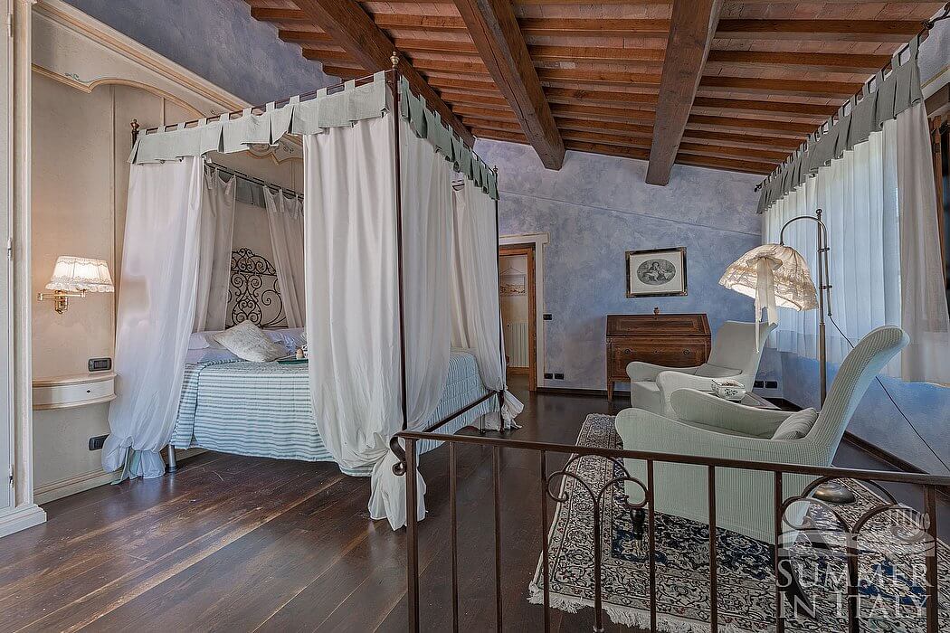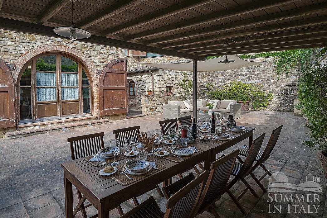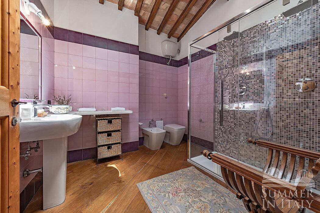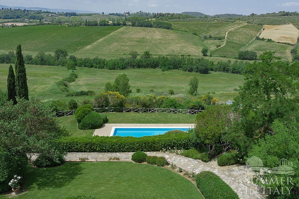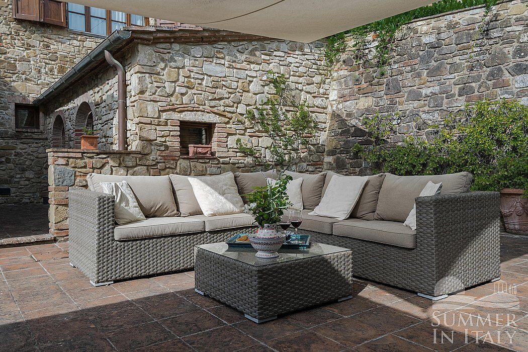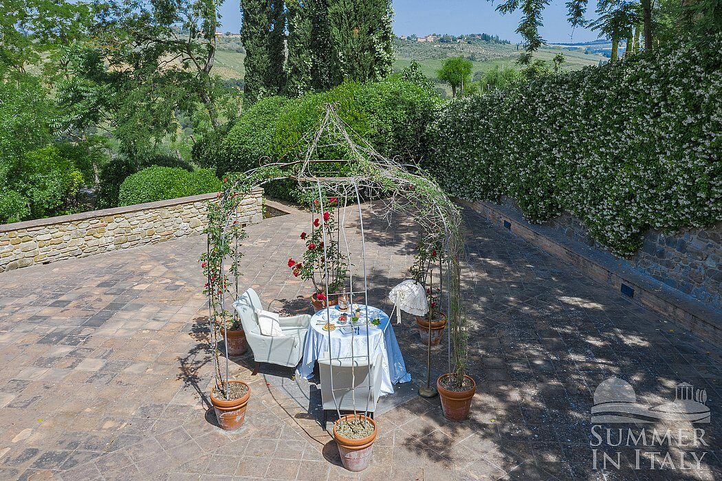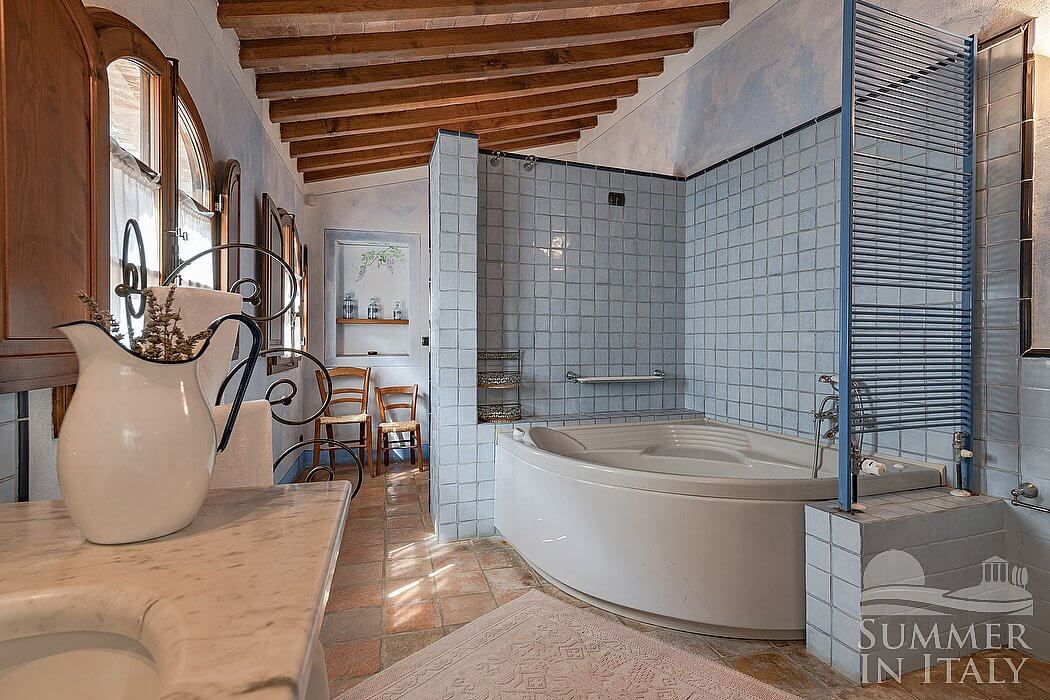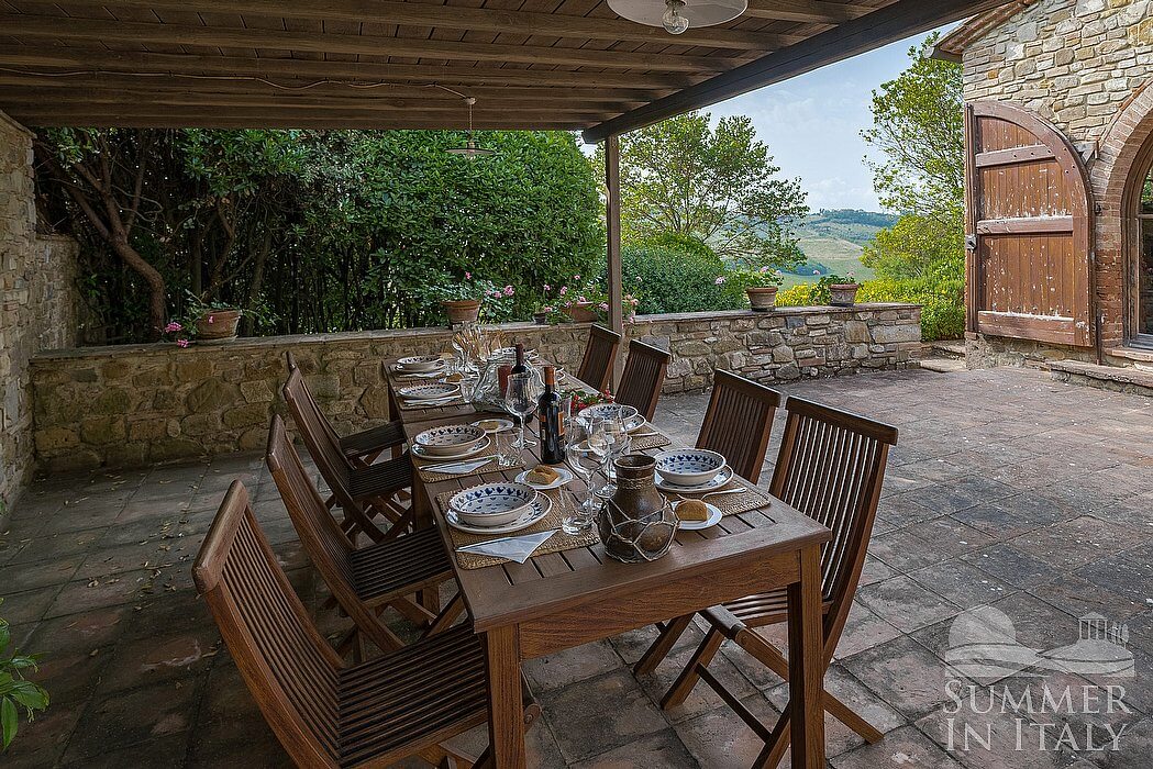 You will reach the swimming pool from the villa going down a short route that cuts through the garden and includes approximately 25 stairway steps. The pool is 7 meters (23 feet) large by 14 meters (46 feet) long. The area is equipped with deck chairs, sun loungers, a gazebo and an external shower. From the swimming pool you will enjoy an enchanting view of the Senesi hills. The pool is open from the beginning of May until the end of October.