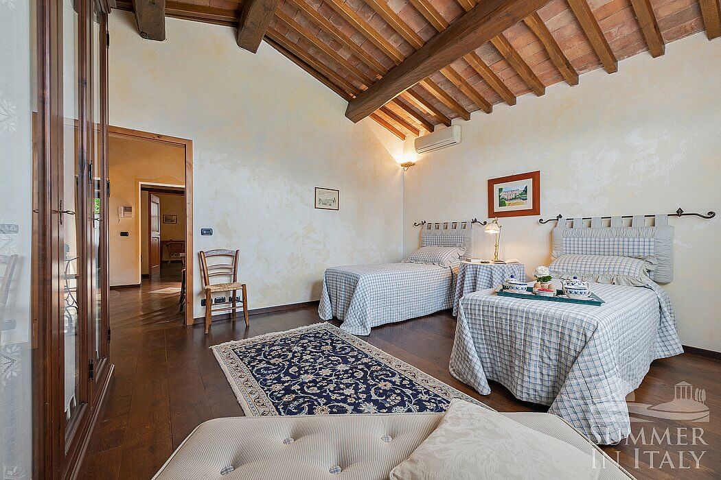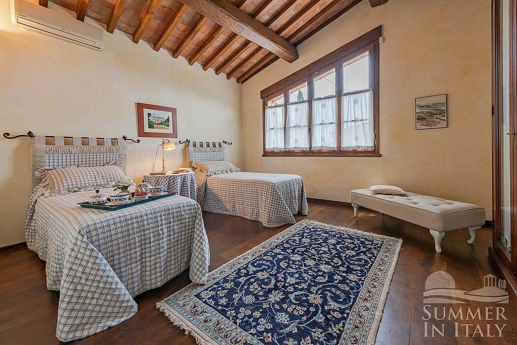 Villa Narciso is a splendid three-story villa surrounded by meadows and by green hills. It sleeps eight people. From Villa Narciso you will enjoy a breathtaking view of the Senesi hills and of the greenery. Villa Narciso is 300 square meters (3230 square feet). It features a private swimming pool, two private terraces, a private patio, a private garden, air conditioning (please read description below to check in which rooms the units are installed), winter heating and WI-FI Internet access.
