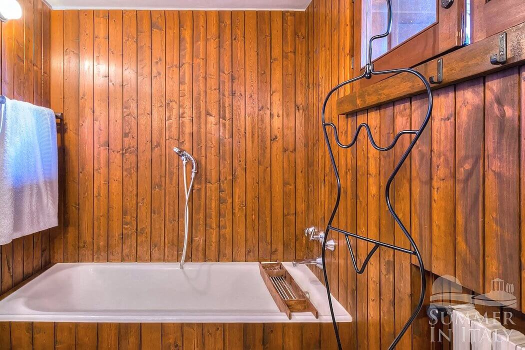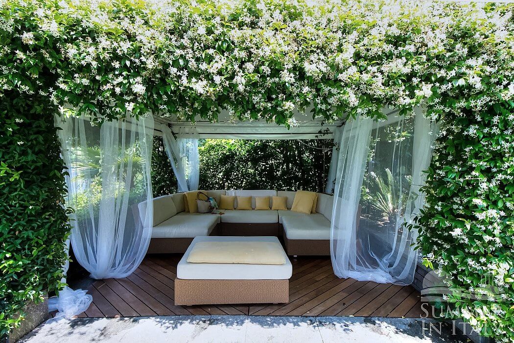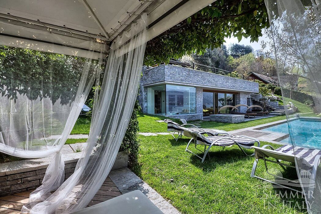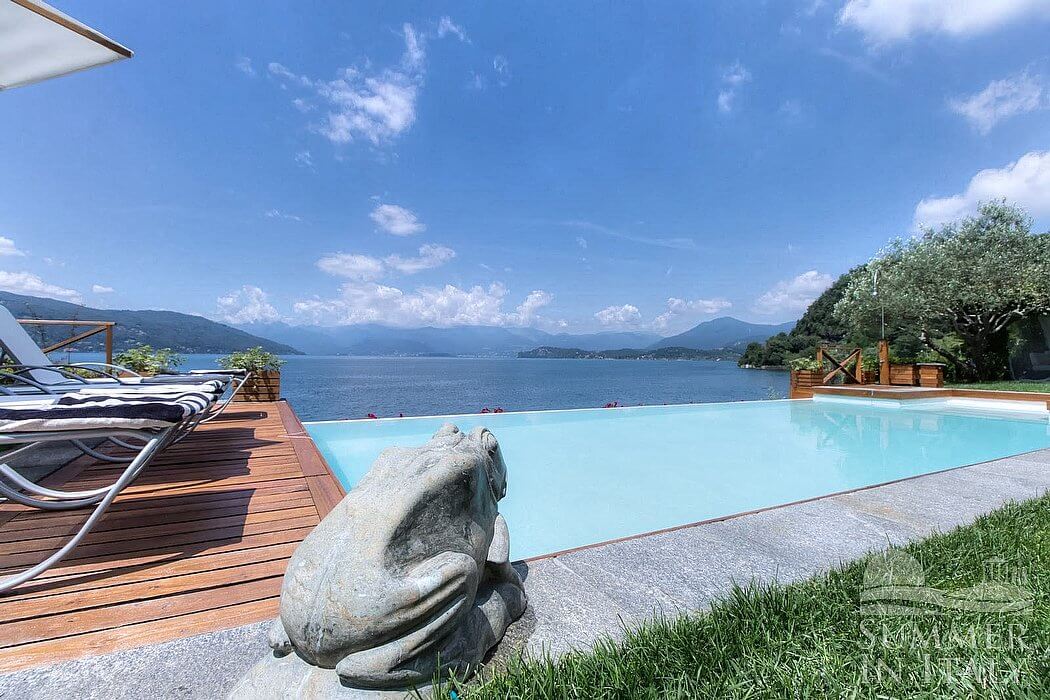 The swimming pool is 5 meters (16 feet) large by 10 meters (33 feet) long, 1.25 meter (4.1 feet) deep. It is an infinity pool and can be heated if requested (additional cost applies -- please enquire with our staff). The area is equipped with a sun umbrella, sun loungers, a gazebo and an external shower. This area is also equipped with a small sofa, and it is partly shaded by awnings and by a perfumed pergola. From the swimming pool you will enjoy an enchanting view of the lake Maggiore and of the mountains. The pool is open all year round.