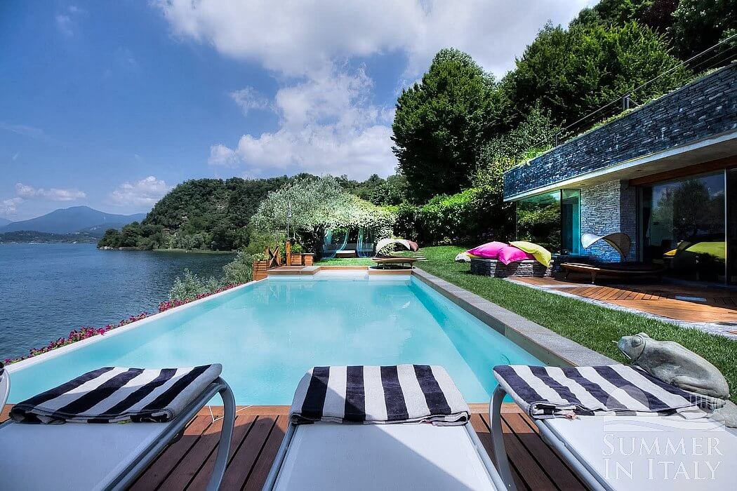 Villa Nivora is an elegant and welcoming two-story villa located right on the Lake Maggiore. It sleeps eight people. From Villa Nivora you will enjoy an enchanting view of the lake Maggiore and of the mountains. Villa Nivora is 580 square meters (6240 square feet). It features a private swimming pool, direct access to the lake, a private patio, a private garden, air conditioning (please read description below to check in which rooms the units are installed), winter heating and WI-FI Internet access.