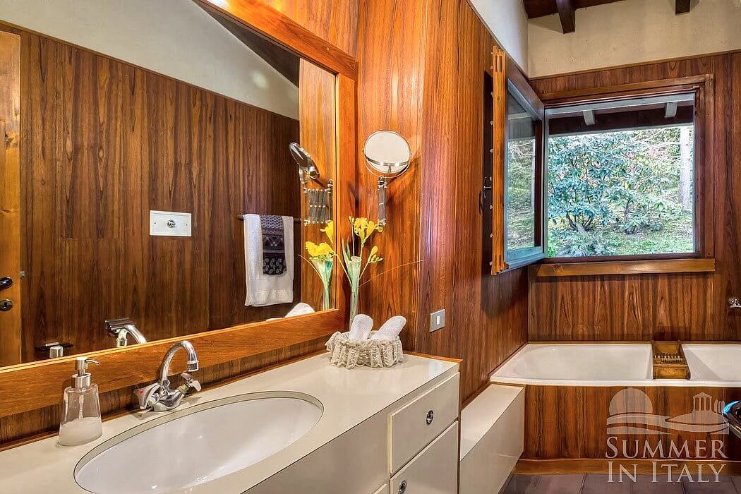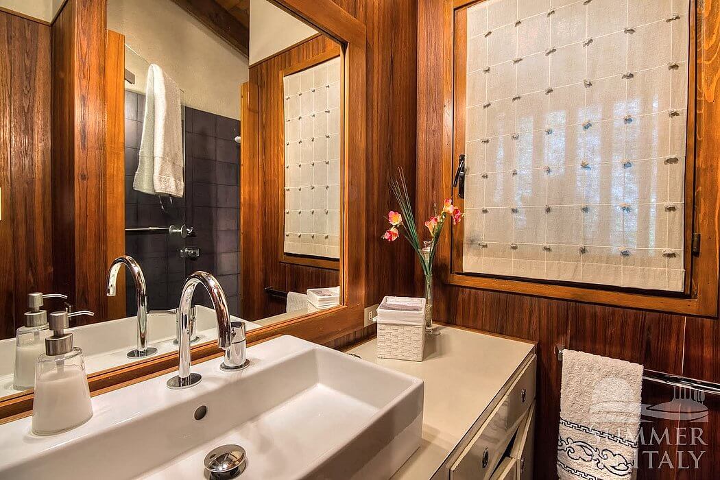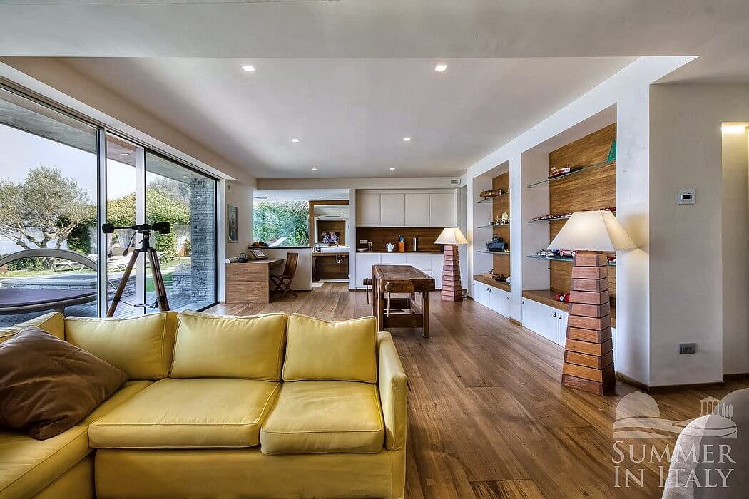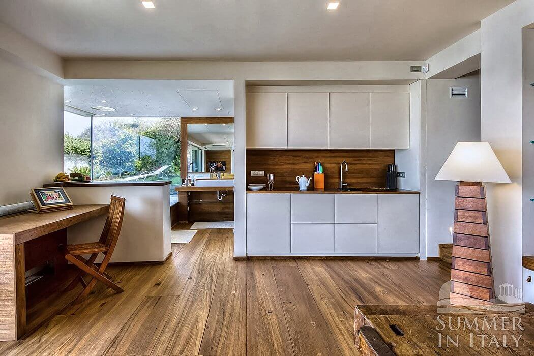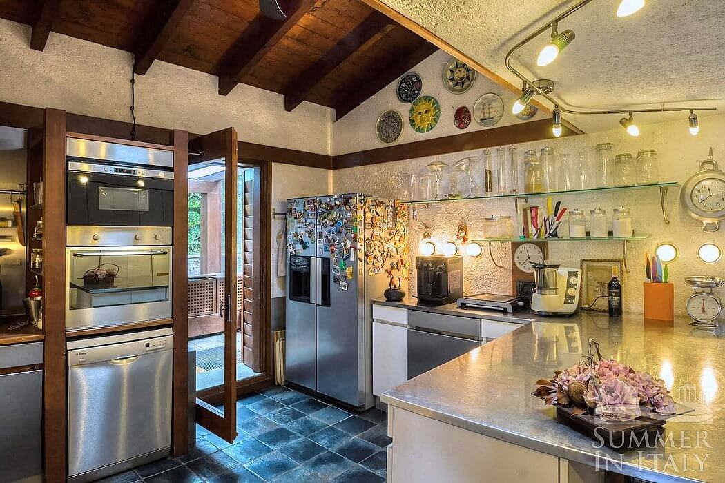 You will be able to enter the kitchen from the first living room. It is equipped with a six-burner gas cooker, an electric oven, a large refrigerator with freezer, a dishwasher, a microwave oven, an Italian-style coffee-maker, an American-style coffee-maker and a kettle. From the kitchen a French door will take you to the patio. The room also has a window.