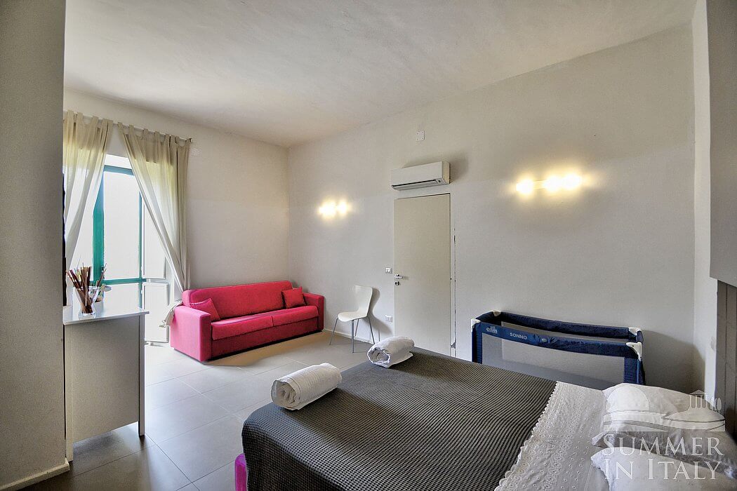 Villa Ortensia A is a characteristic and welcoming apartment located right on the beach. It sleeps six people. From Villa Ortensia A you will enjoy an enchanting view of the beach and of the sea. Villa Ortensia A is 55 square meters (590 square feet). It features air conditioning (please read description below to check in which rooms the units are installed) and WI-FI Internet access.