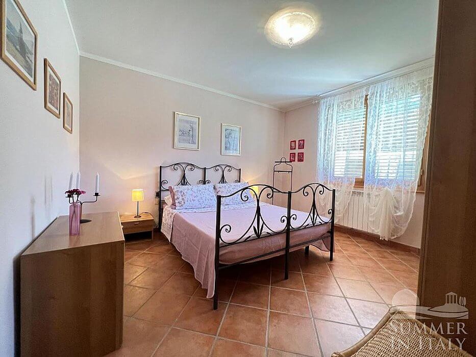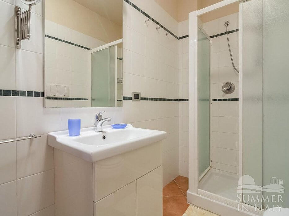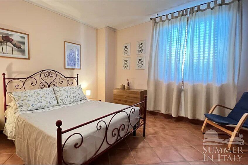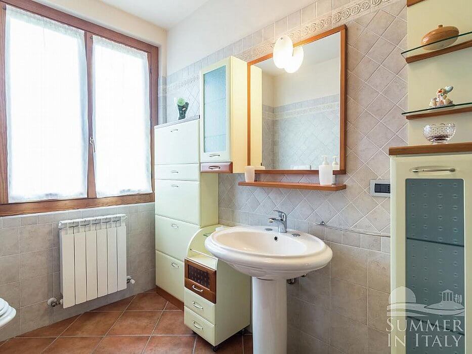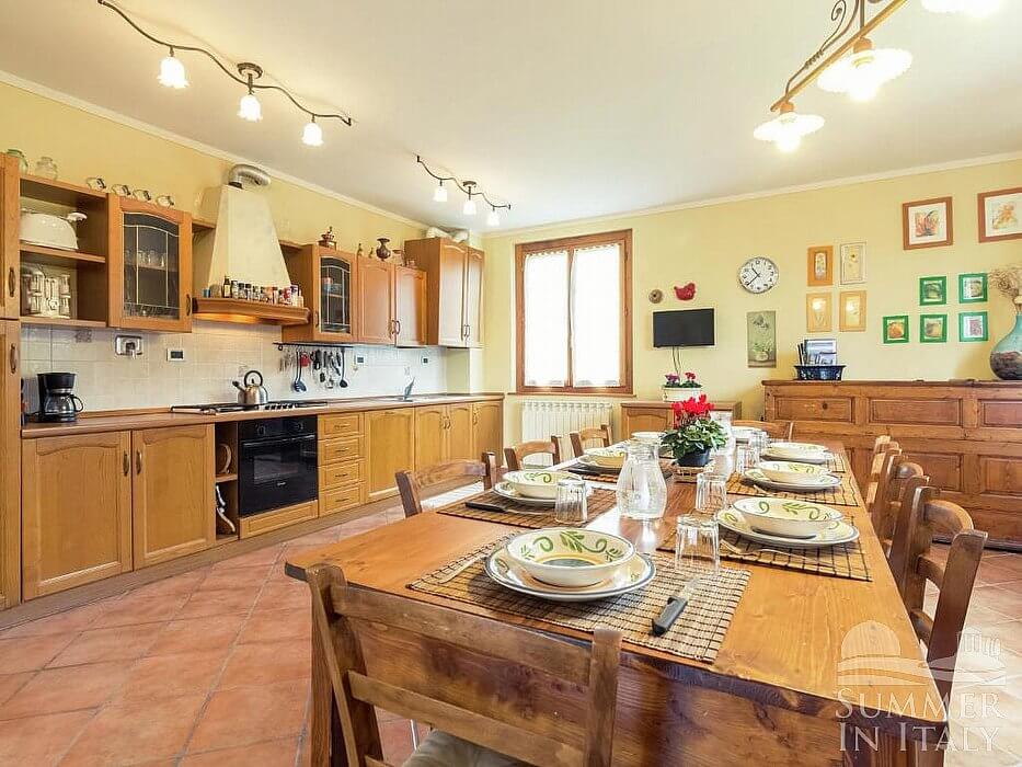 The kitchen is spacious and comfortable, equipped with a four-burner gas cooker, an electric oven, a refrigerator with freezer, a dishwasher, a microwave oven, an Italian-style coffee-maker, an American-style coffee-maker, a toaster and other small appliances. The dining table can accommodate 12 guests. The kitchen is also equipped with a satellite television (local channels). From the kitchen a French door will take you to the garden and the swimming pool. The room has two windows with a view of the garden.