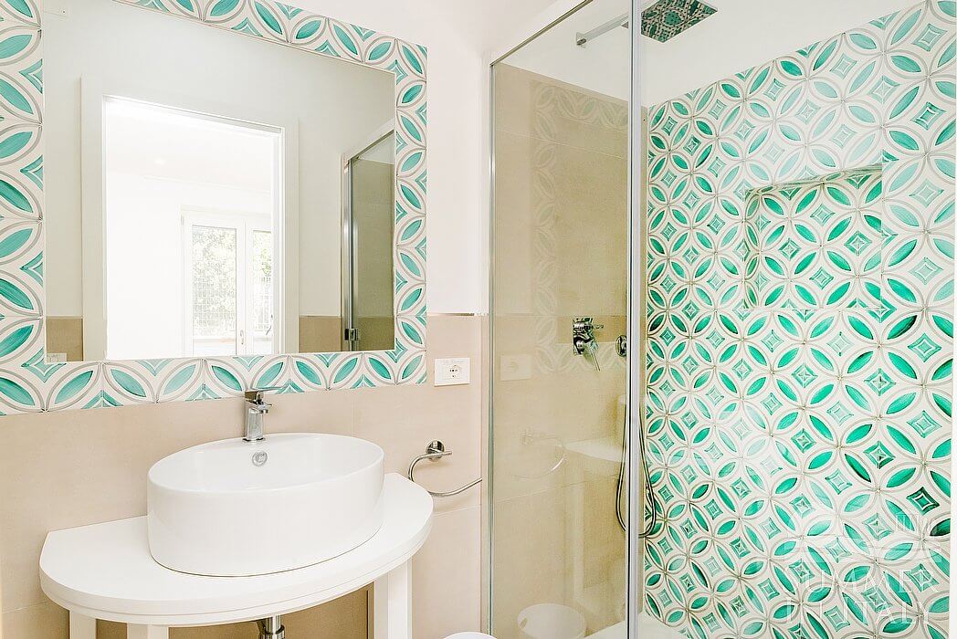 You will be able to enter the third bedroom through a corridor. The bedroom has a matrimonial bed (160 cm/63 inches, wider than a queen-size bed). The furnishings include a desk. In this room you will find a satellite television (local channels). The room has a window, and it's equipped with an air conditioning/heating unit. This bedroom has an en-suite bathroom, decorated with majolica tiles and equipped with a washbasin, a toilet, a fully enclosed shower and a hairdryer.