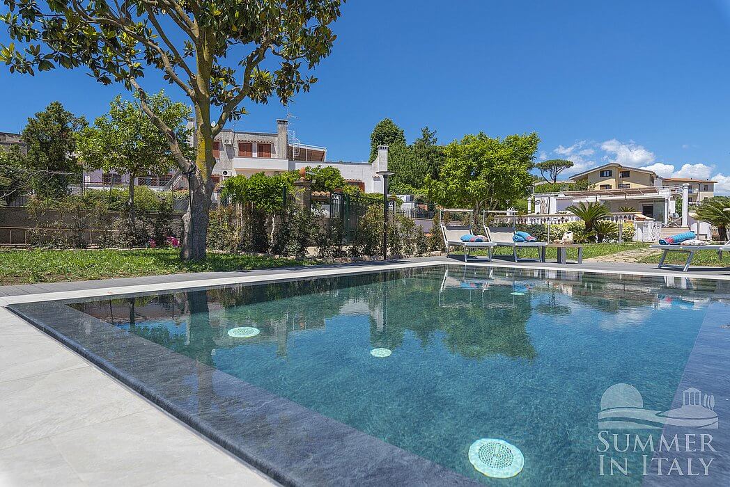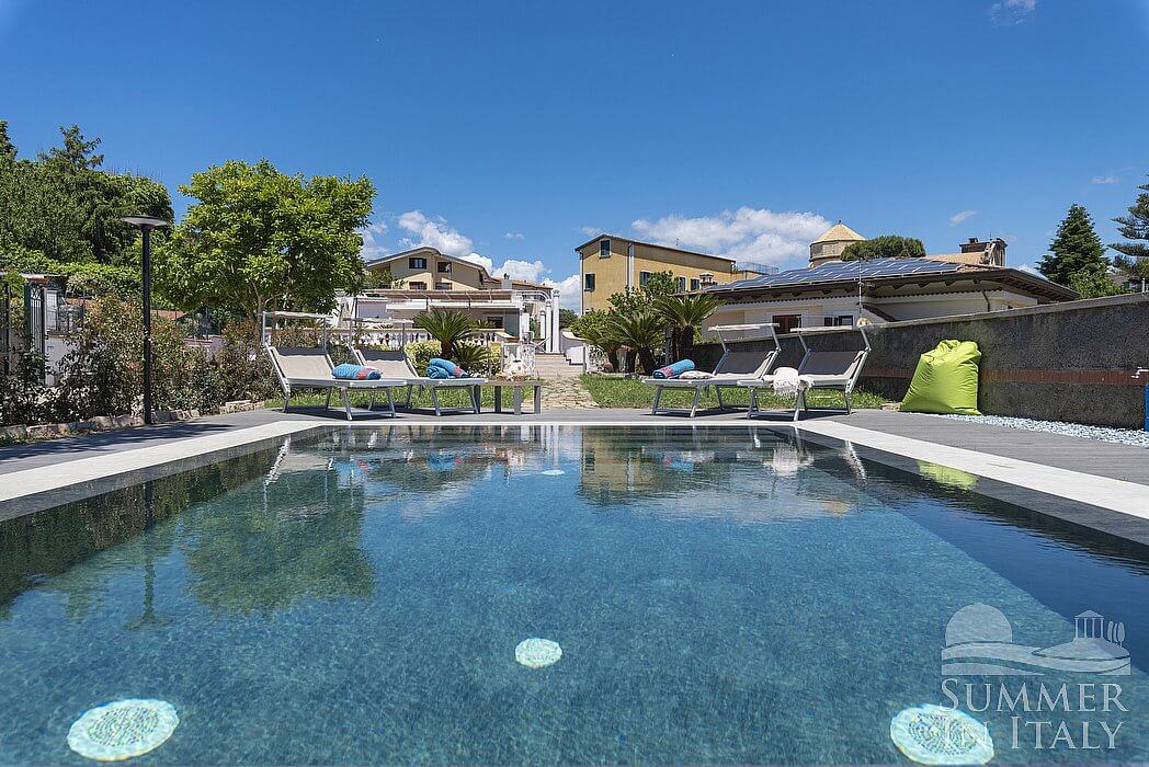 Villa Pacifica is a bright and cheerful one-story villa located in the center of Sant'Agata sui Due Golfi. It sleeps six people. From Villa Pacifica you will enjoy a view of the greenery and of the other buildings. Villa Pacifica is 90 square meters (970 square feet). It features a private swimming pool, a private patio, a private garden, air conditioning (please read description below to check in which rooms the units are installed), winter heating and WI-FI Internet access.