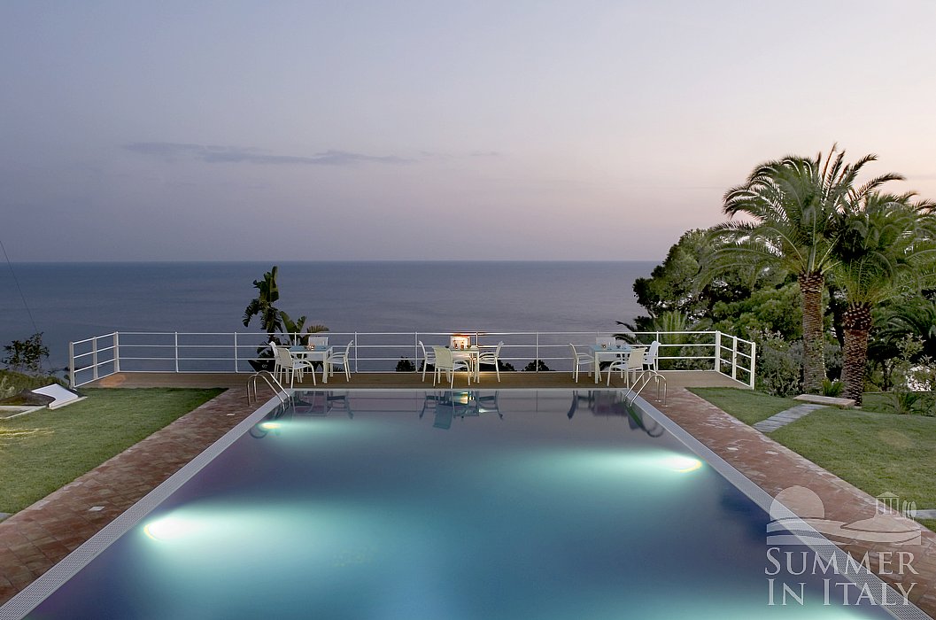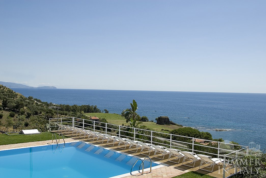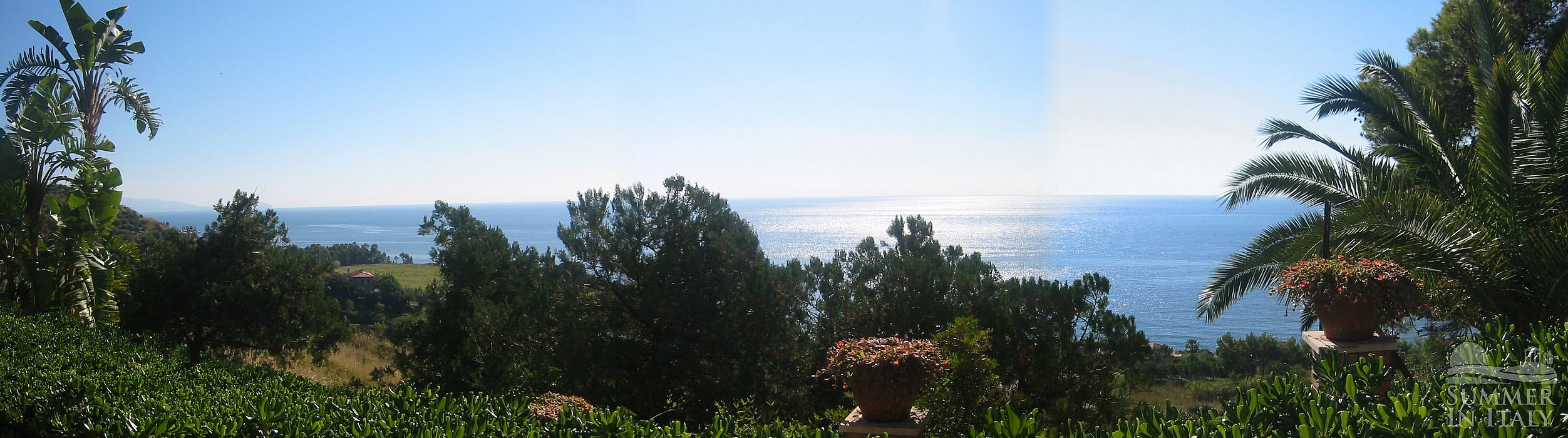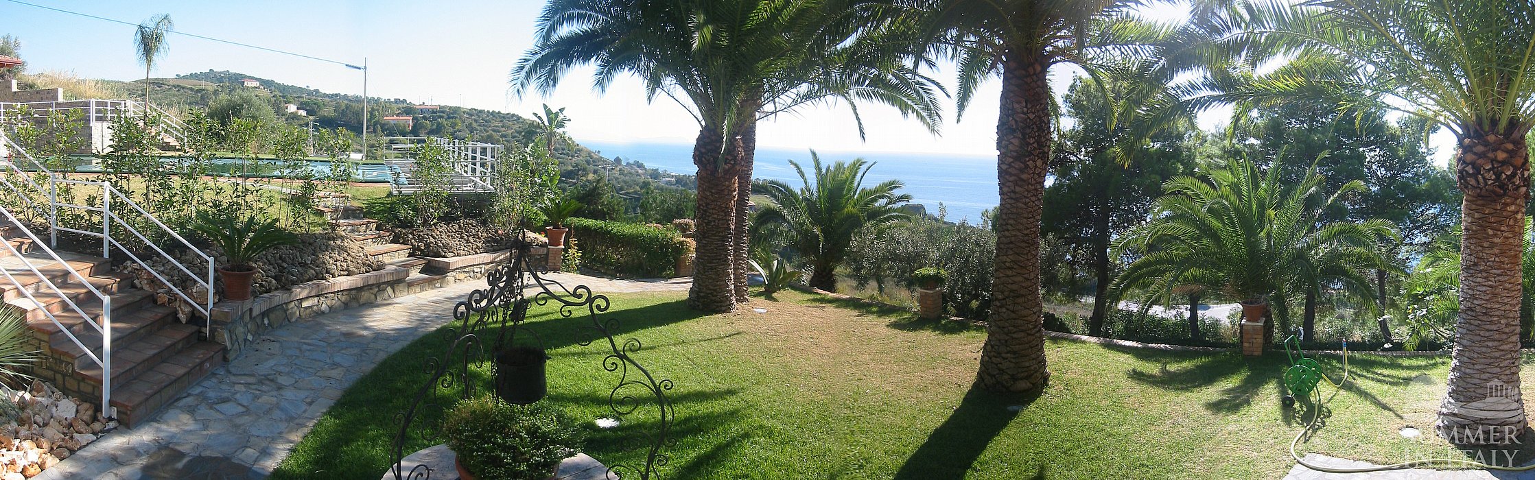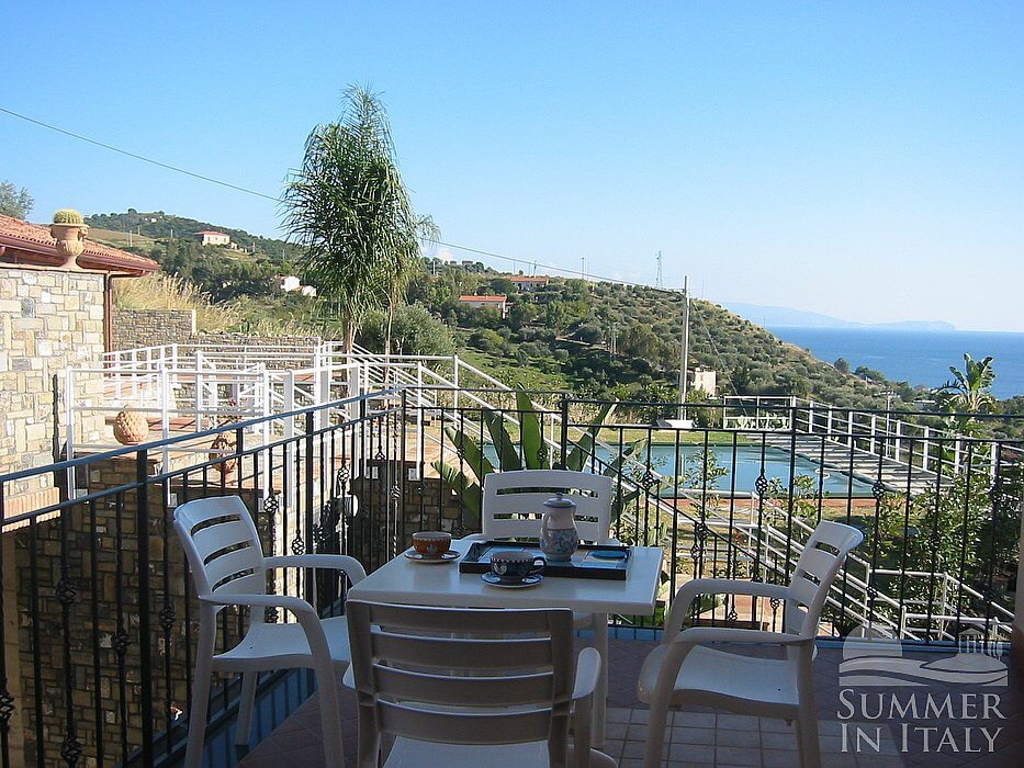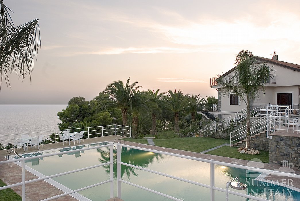 The villa is a three-storey building, isolated and surrounded by a fenced-in garden. All you will see is an uncontaminated angle of the Parco Nazionale del Cilento (National Park of Cilento): around and to the back of the villa is the verdant hill covered in Mediterranean vegetation, right in front of an endless horizon of blue sea.