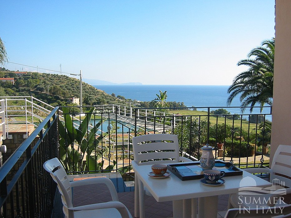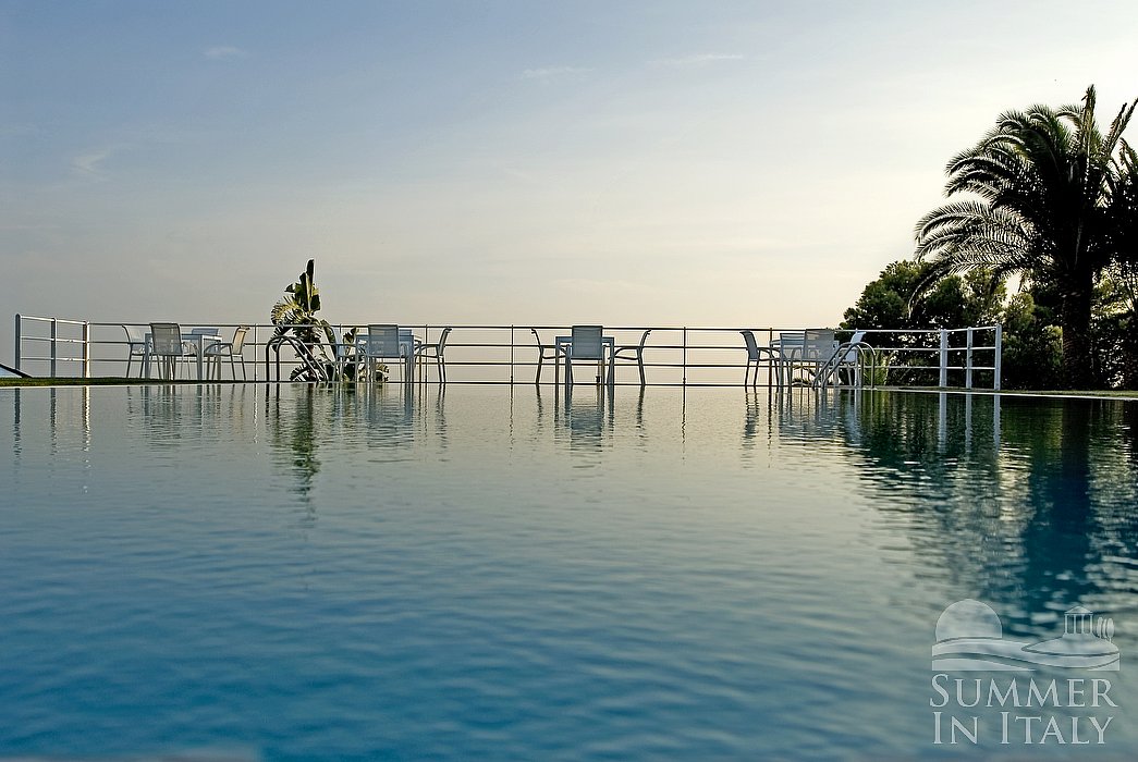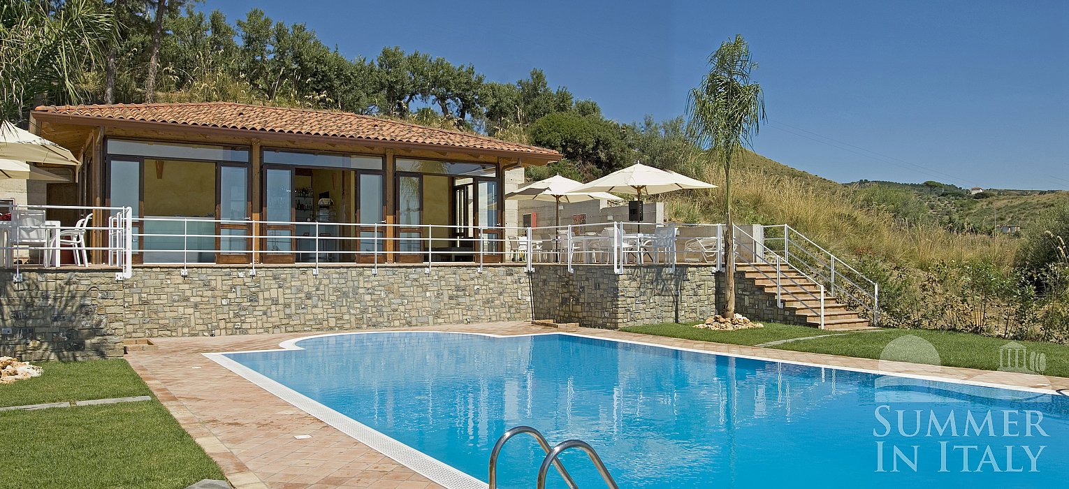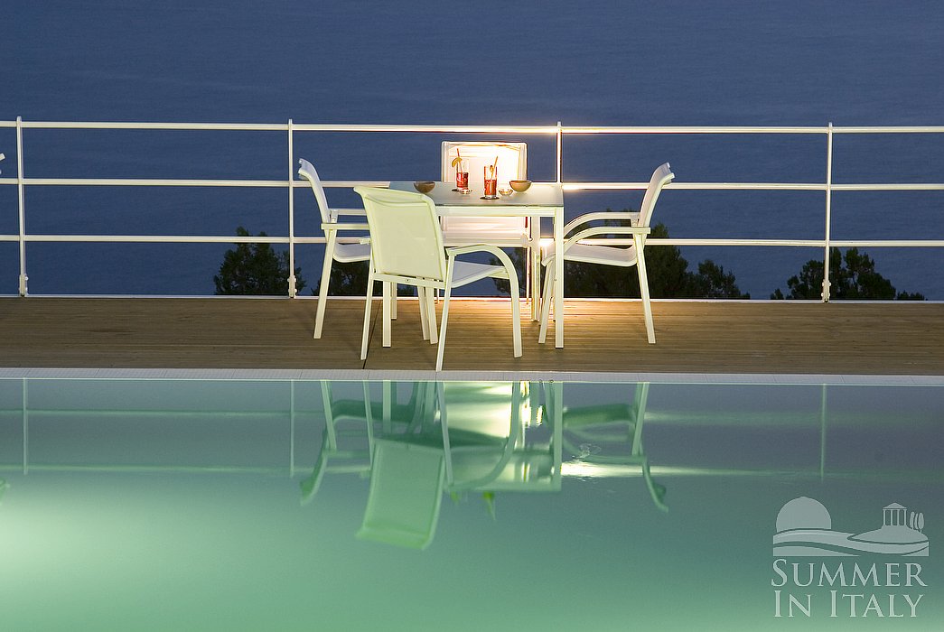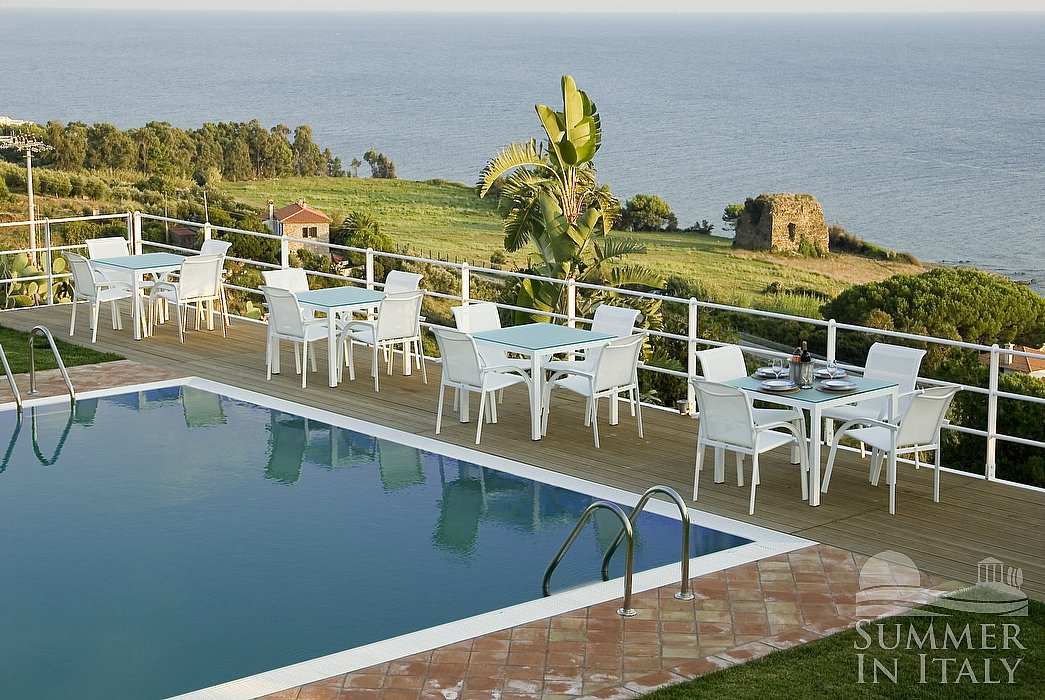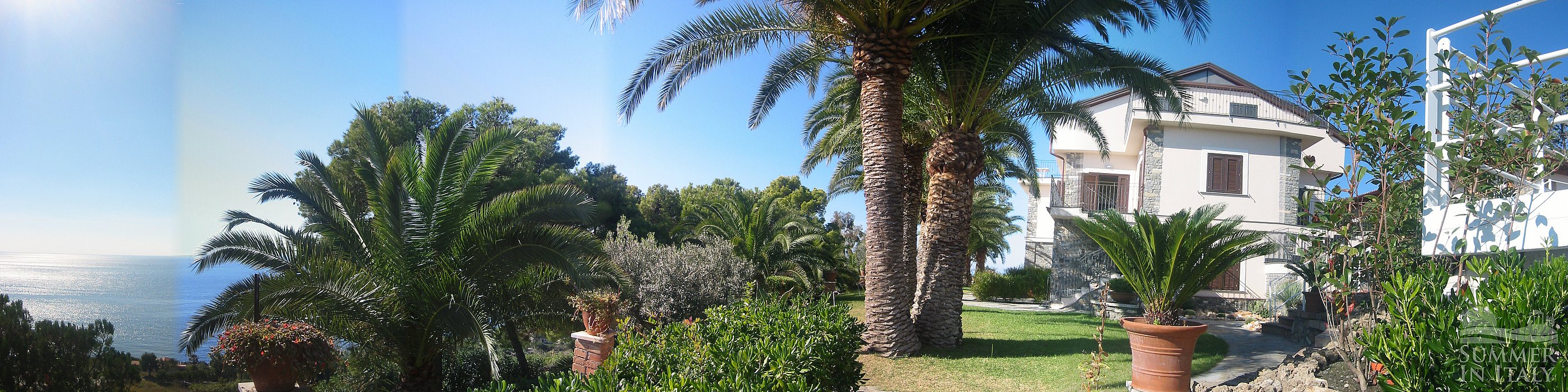 The villa is a three-storey building, isolated and surrounded by a fenced-in garden. All you will see is an uncontaminated angle of the Parco Nazionale del Cilento (National Park of Cilento): around and to the back of the villa is the verdant hill covered in Mediterranean vegetation, right in front of an endless horizon of blue sea.